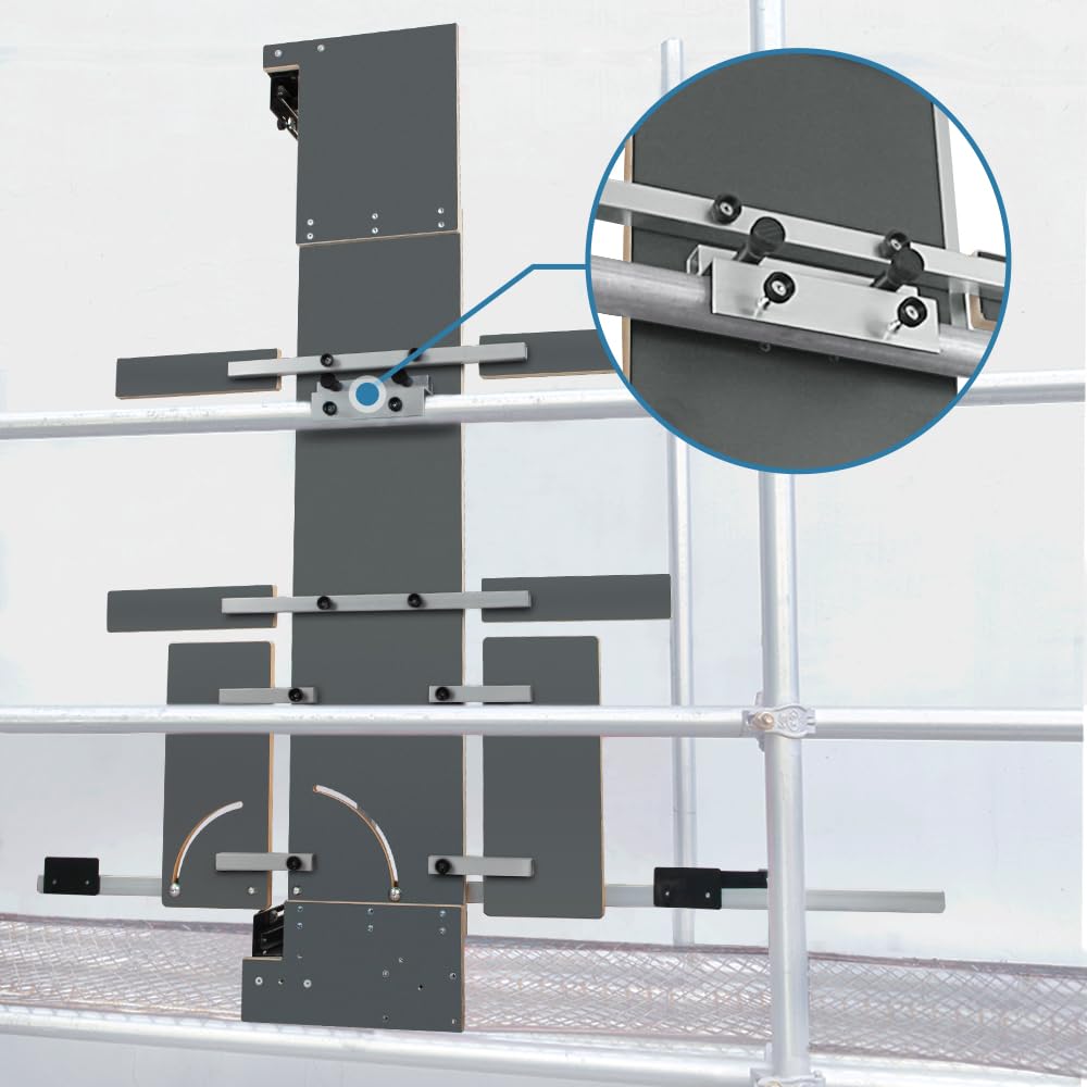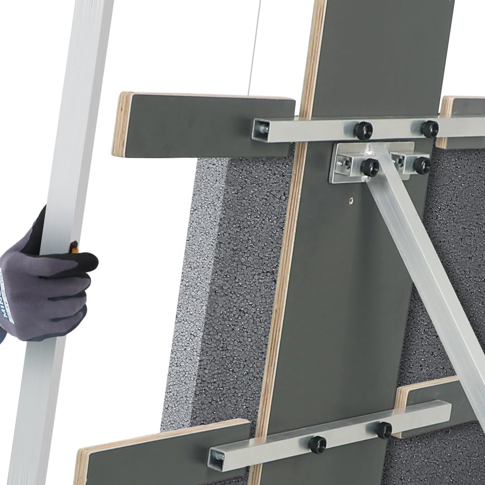 Dank der abnehmbaren und unabhängigen Stützvorrichtung lässt sich der Styroporschneider flexibel an jedem Einsatzort positionieren. Ob in der Werkstatt, auf der Baustelle oder direkt am Gerüst befestigt – Sie arbeiten stets sicher, stabil und effizient.