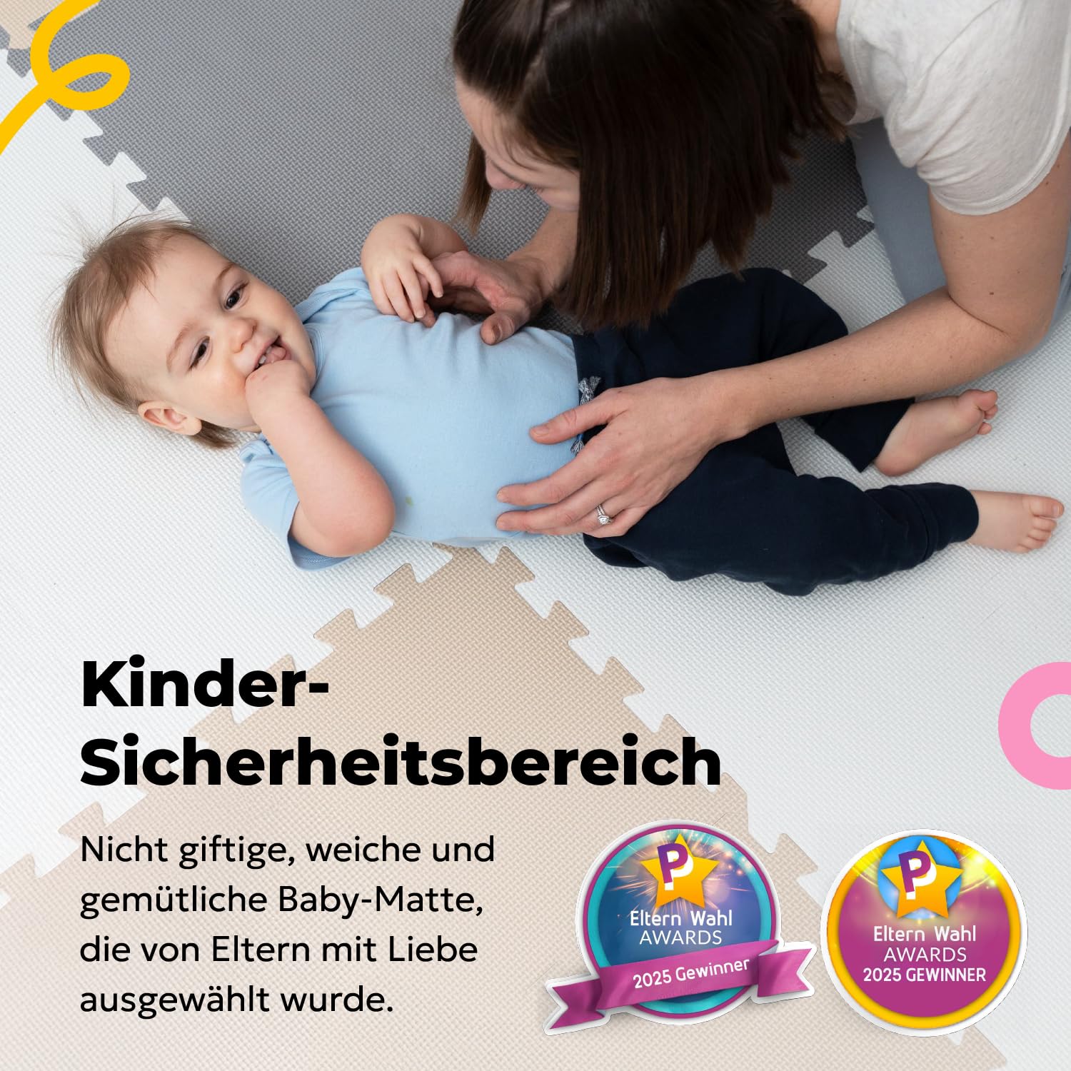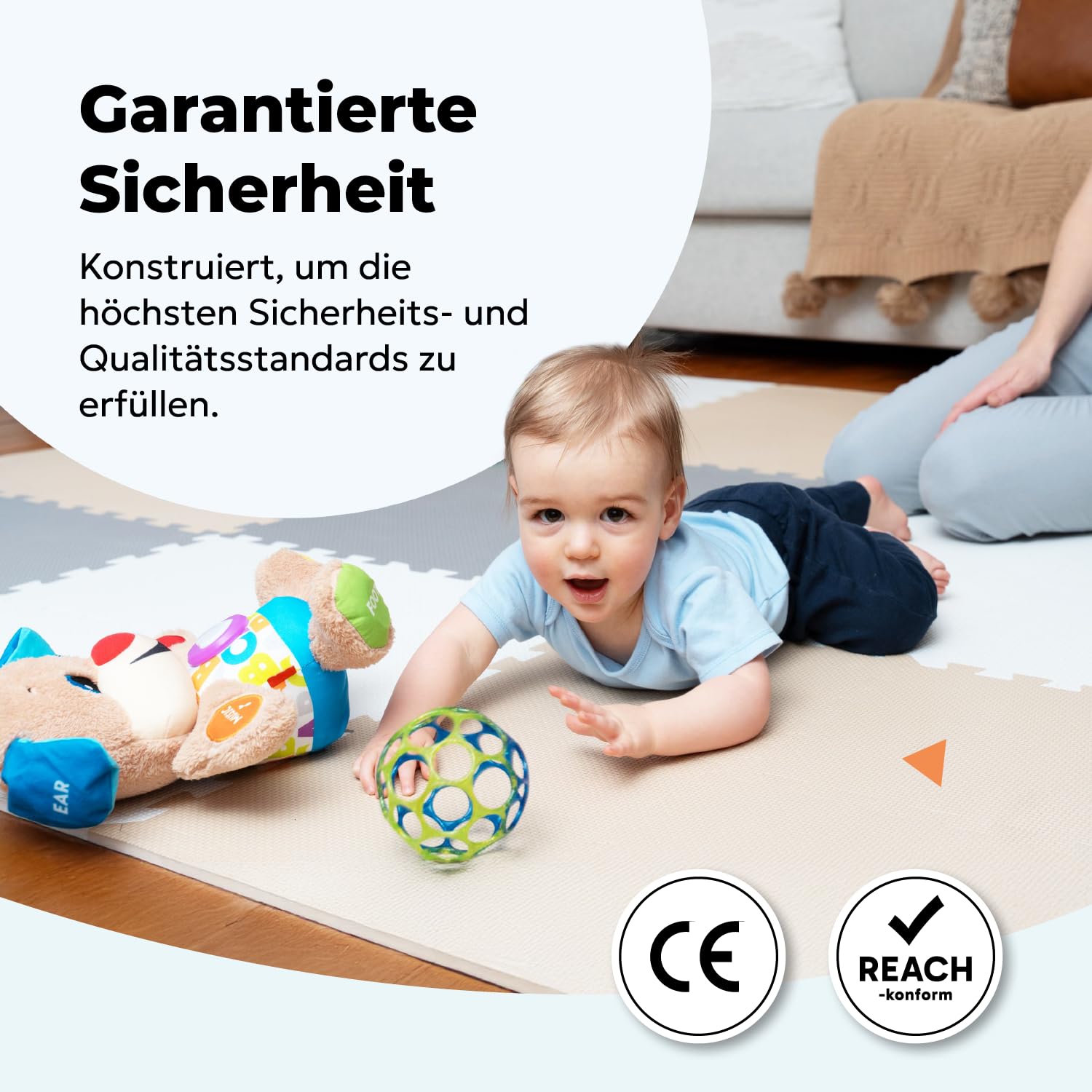 Diese stilvolle Spielmatte vereint zertifizierte Sicherheit mit modernem Design und bietet Ihrem Kind eine ideale Unterlage zum Entdecken, Spielen und Wachsen.