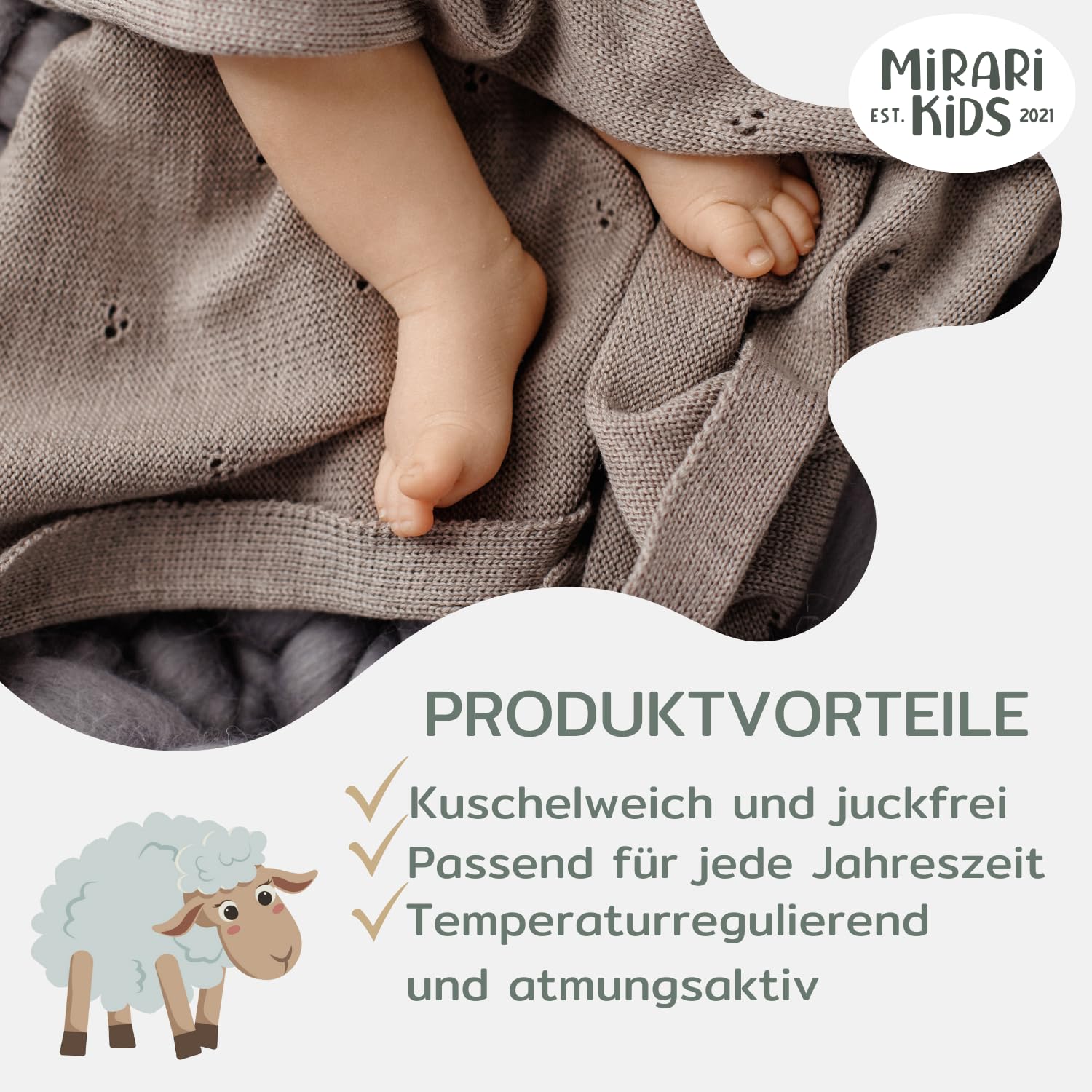 MIRARI Babydecke Merino Wolle Neugeborene Winter 75x100 cm