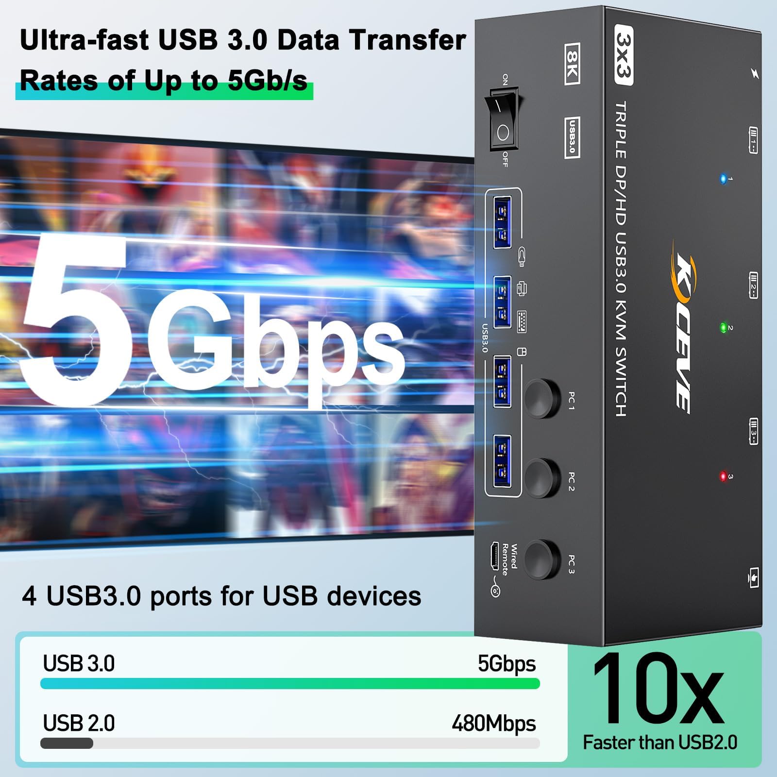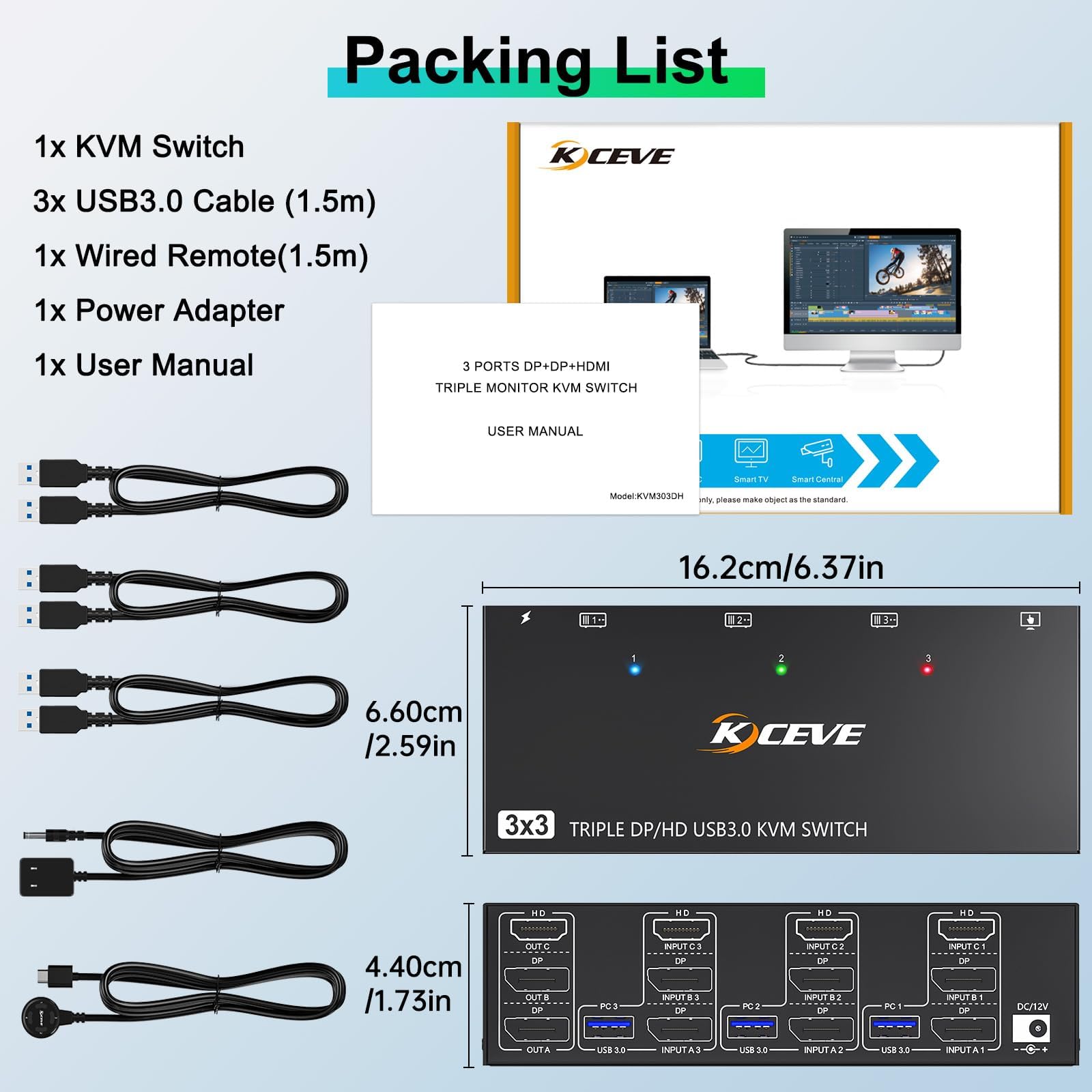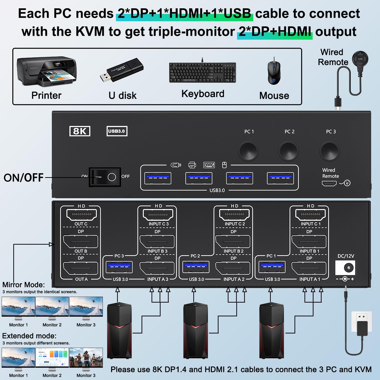 MLEEDA KVM Switch Triple Monitor - 3 PC 3 Monitore 8K HDMI DP
