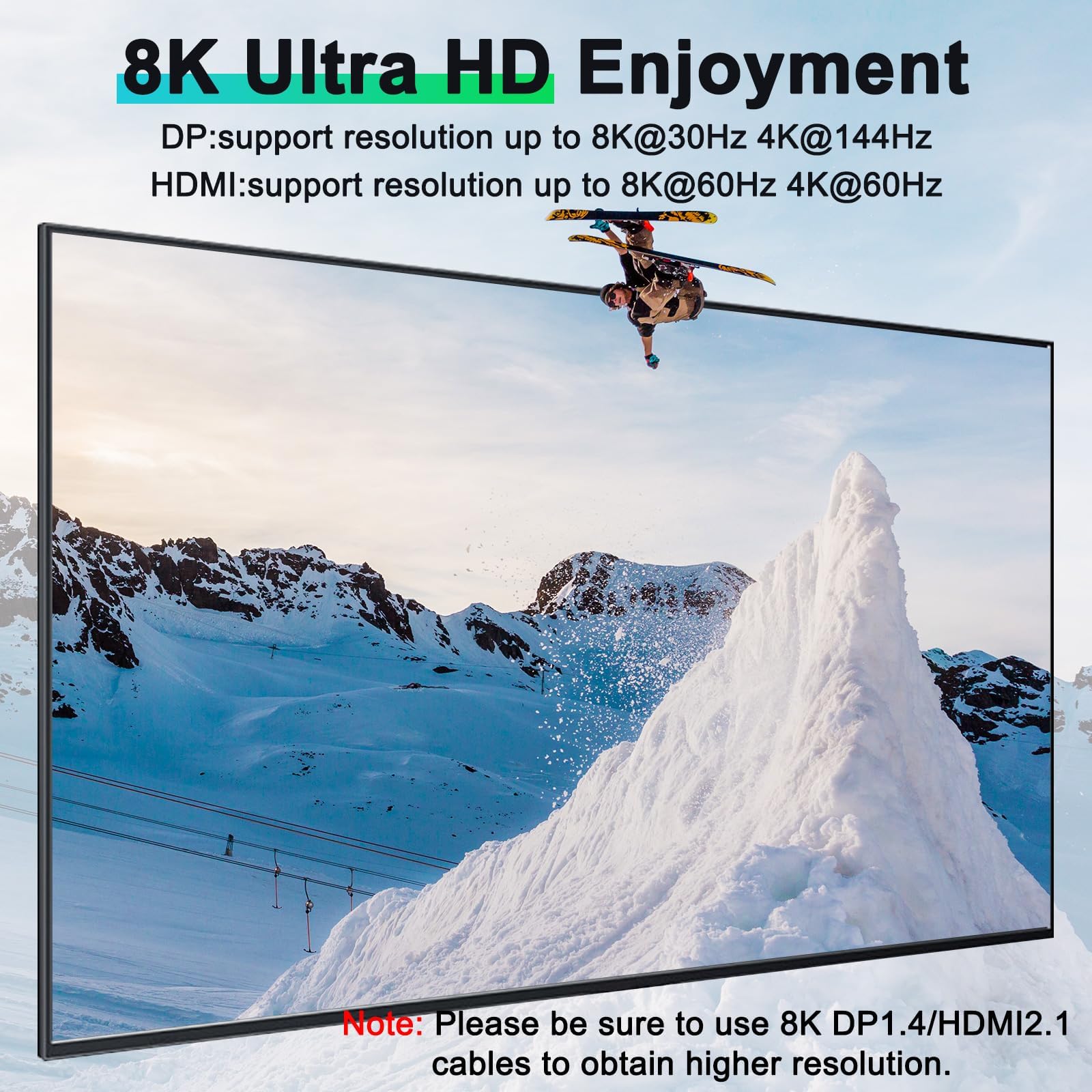 - Herausragende Bildqualität: Geniessen Sie gestochen scharfe Auflösungen von bis zu 8K@60Hz über HDMI und 4K@144Hz über DisplayPort – perfekt für professionelle Grafikanwendungen und flüssiges Gaming.