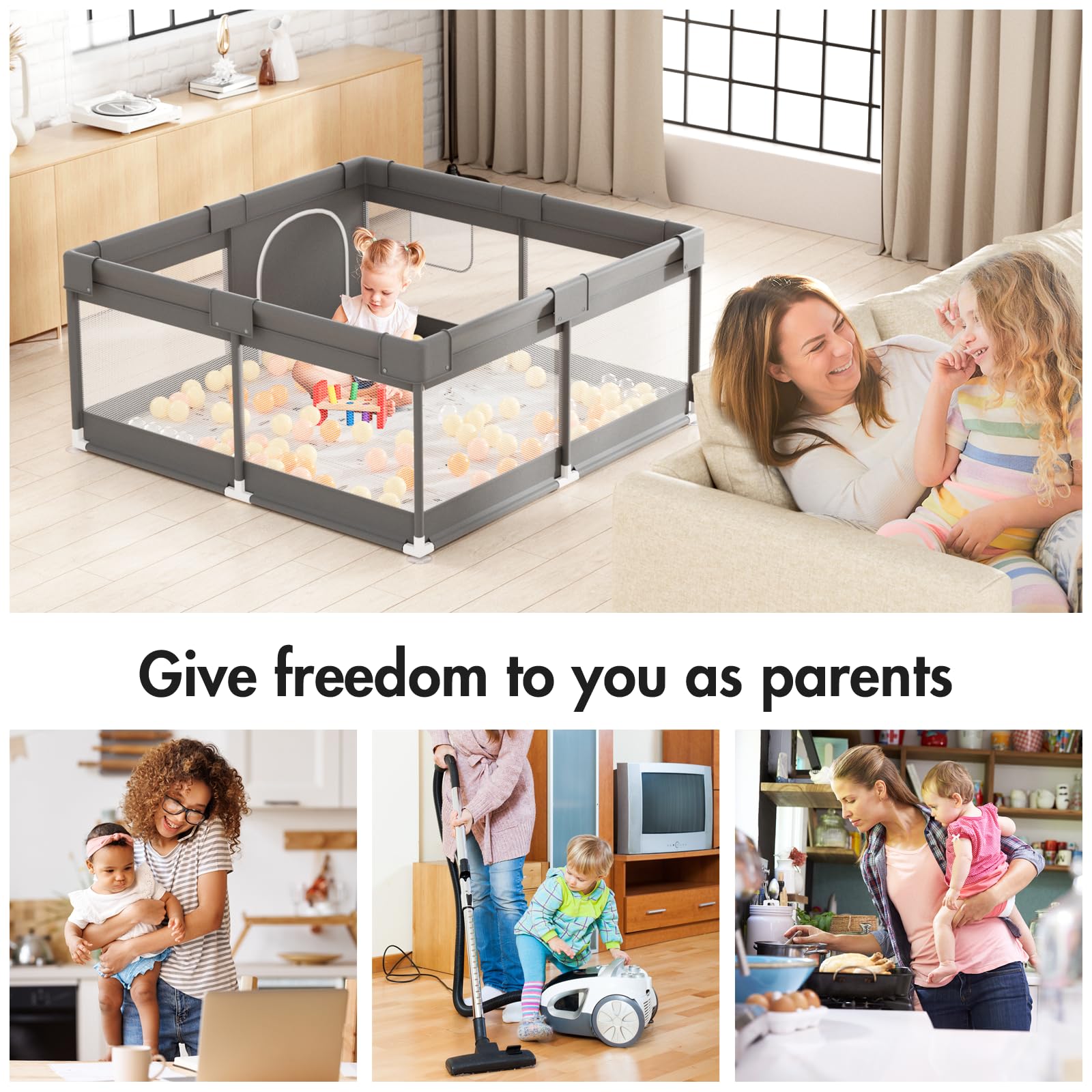 Mloong Laufgitter Baby kompakt 120x120cm – Dunkelgrau