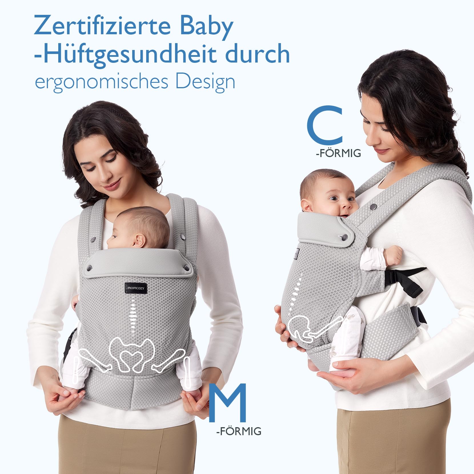 Momcozy Atmungsaktive Ergonomische Babytrage - Air Mesh Grau