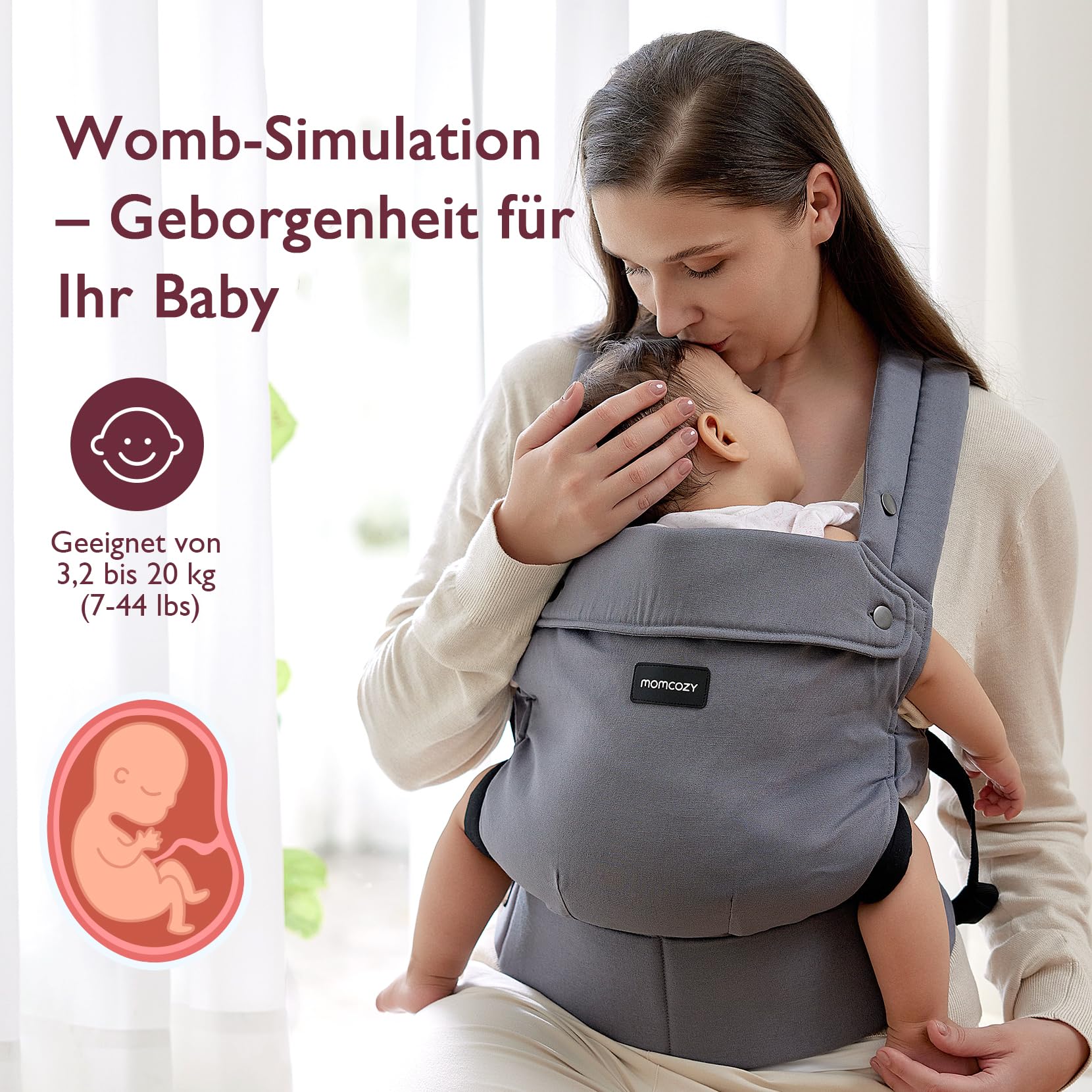 Momcozy Ergonomische Babytrage – Leicht & Komfortabel – Grau