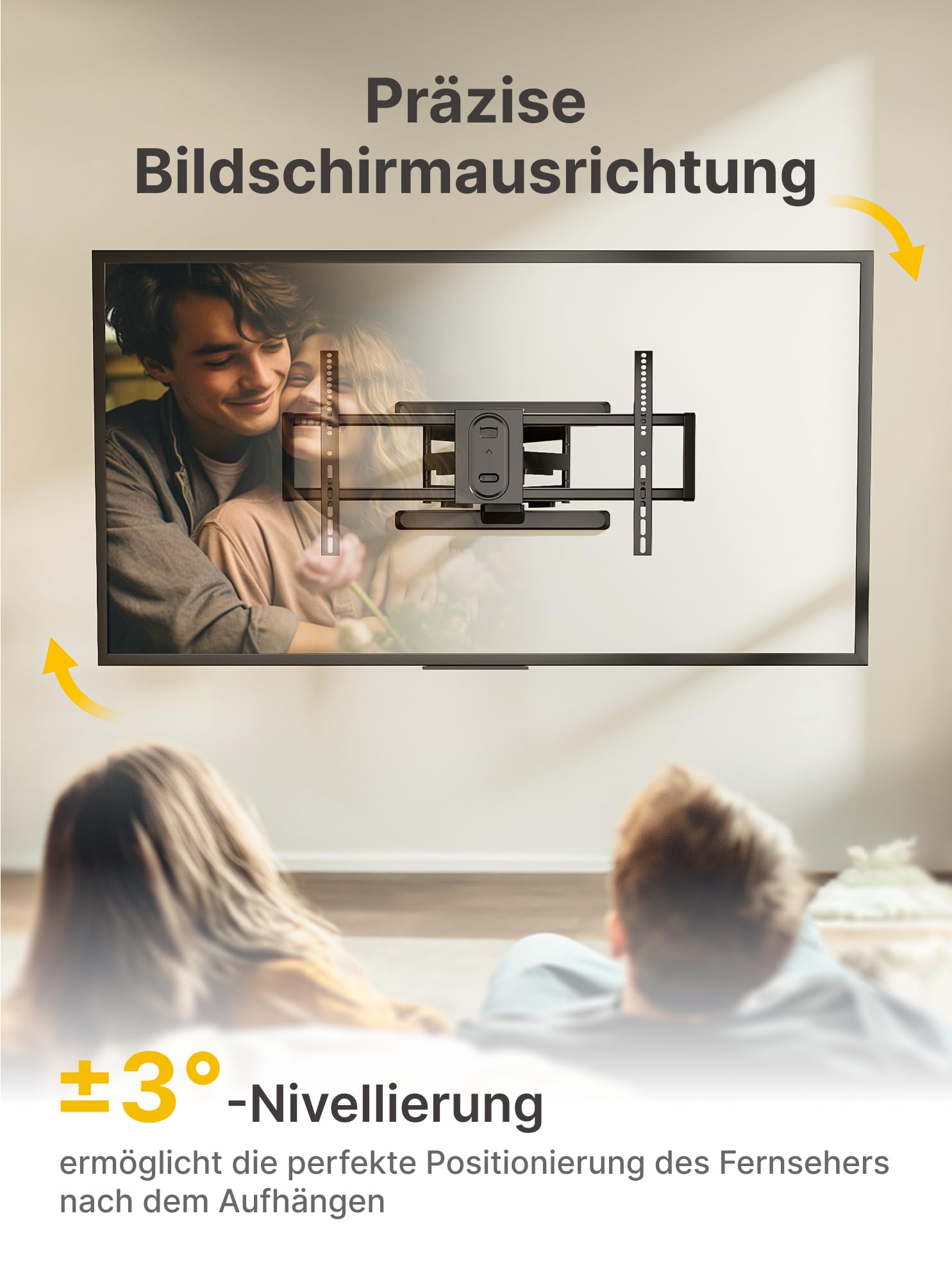 - Platzsparendes Design: Ziehen Sie Ihren Fernseher bis zu 559 mm von der Wand aus oder schieben Sie ihn bei Nichtgebrauch auf schlanke 65 mm zurück. Das integrierte Kabelmanagement sorgt für eine saubere und aufgeräumte Optik.