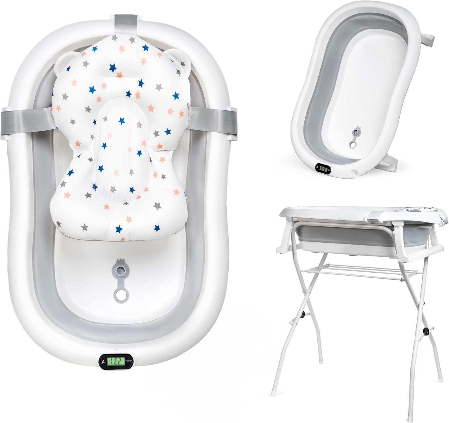 Das in die Wanne integrierte digitale LCD-Thermometer misst die Temperatur auf 0,1 °C genau und hilft Ihnen, die ideale Badetemperatur mühelos zu erreichen. Für Neugeborene und Babys wird eine Wassertemperatur von etwa 37 °C empfohlen.