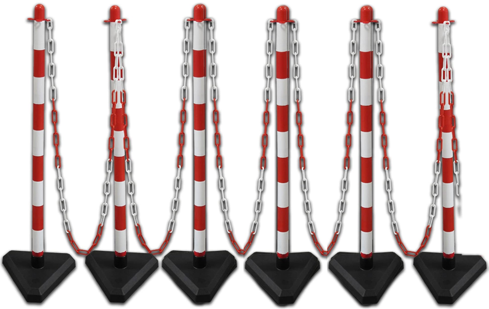 Das Komplettset beinhaltet alles, was Sie für eine Absperrung von bis zu 10 Metern benötigen: 6 rot-weisse Kettenständer, eine 10 Meter lange Kunststoffkette sowie je 10 Verbindungsglieder und Einhängehaken. Sie können sofort loslegen.