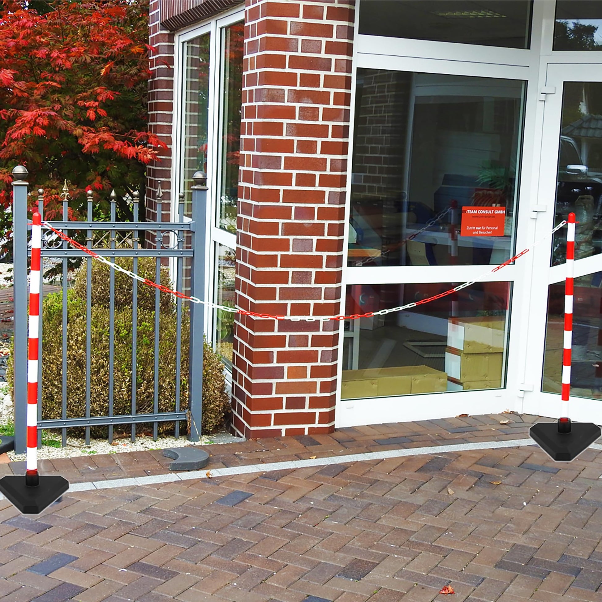 Jeder Ständer hat eine Gesamthöhe von 870 mm. Die auffällige rot-weisse Warnfarbe der Oberteile sorgt für eine exzellente Sichtbarkeit und erhöht somit die Sicherheit, indem sie Bereiche klar und unübersehbar abgrenzt.