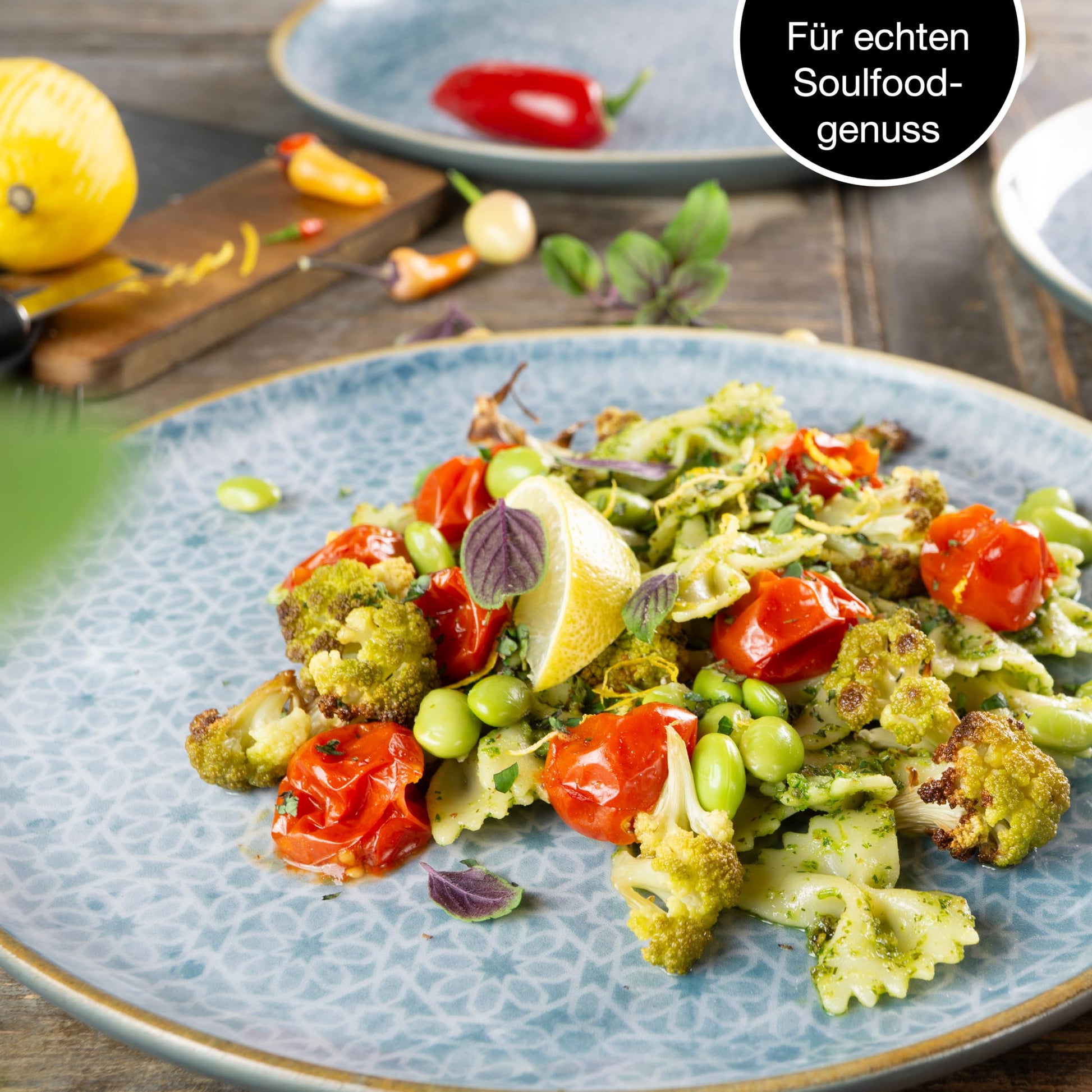 Das Set besticht durch seine intensive azurblaue Farbgebung, die ein frisches, mediterranes Ambiente auf den Tisch bringt. Es ist die perfekte Basis, um Ihre Gerichte stilvoll in Szene zu setzen und bei Gästen einen besonderen Eindruck zu hinterlassen.