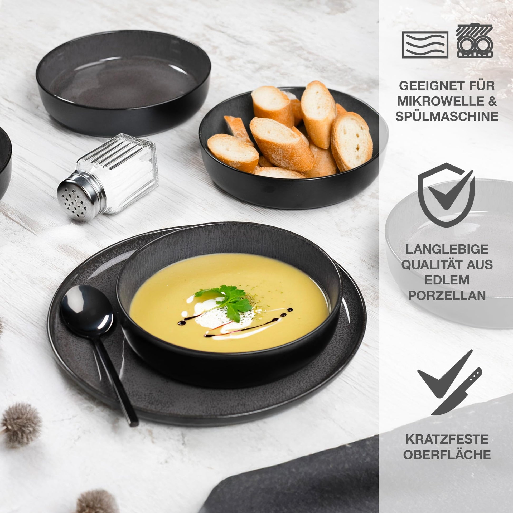 Moritz & Moritz VIDA Porzellan Geschirrset 12 P. Anthrazit 36-tlg.