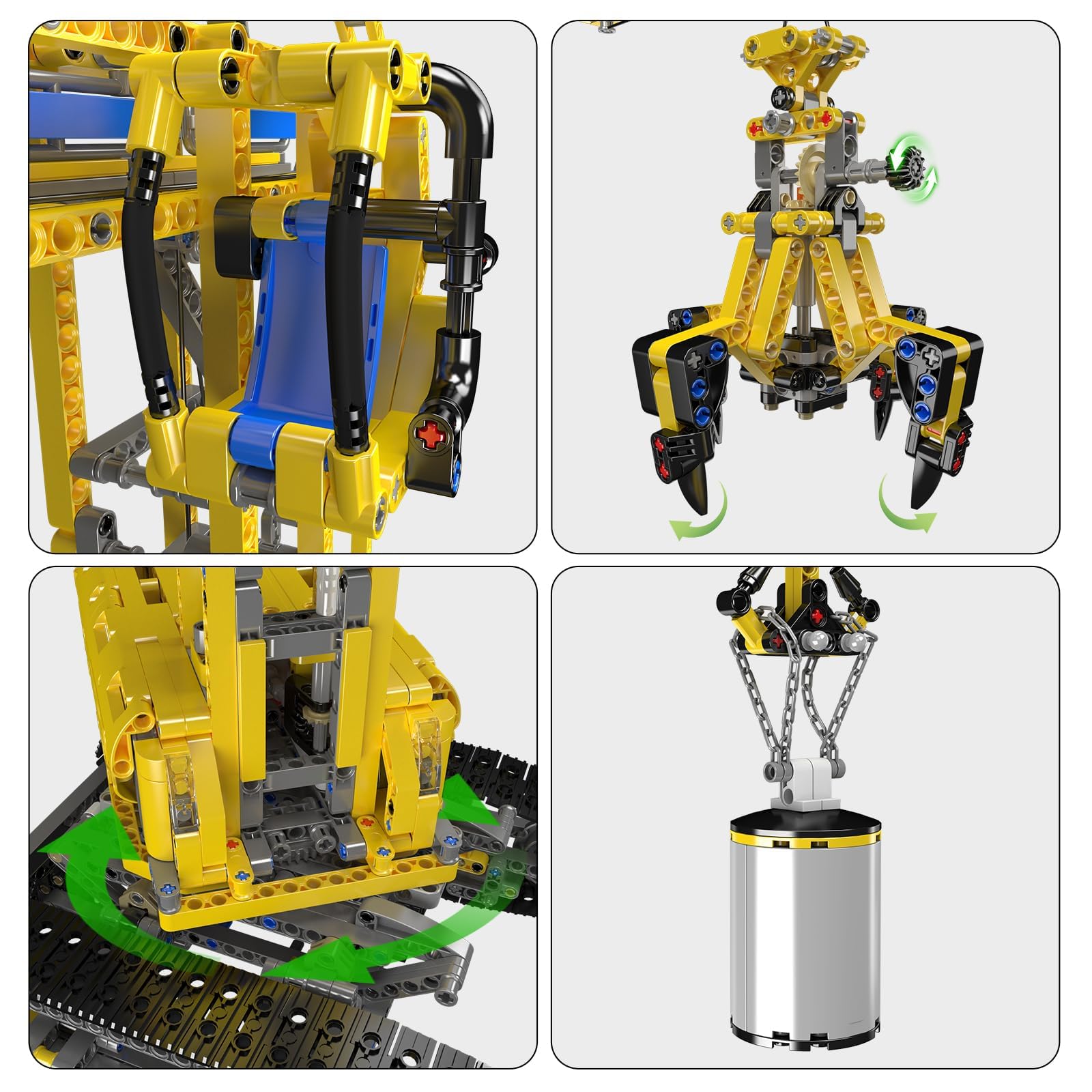- Vollständig motorisierte Funktionen: Steuern Sie den Ausleger, die Seilwinde, den drehbaren Aufbau und die Gleisketten präzise über die integrierten Motoren.