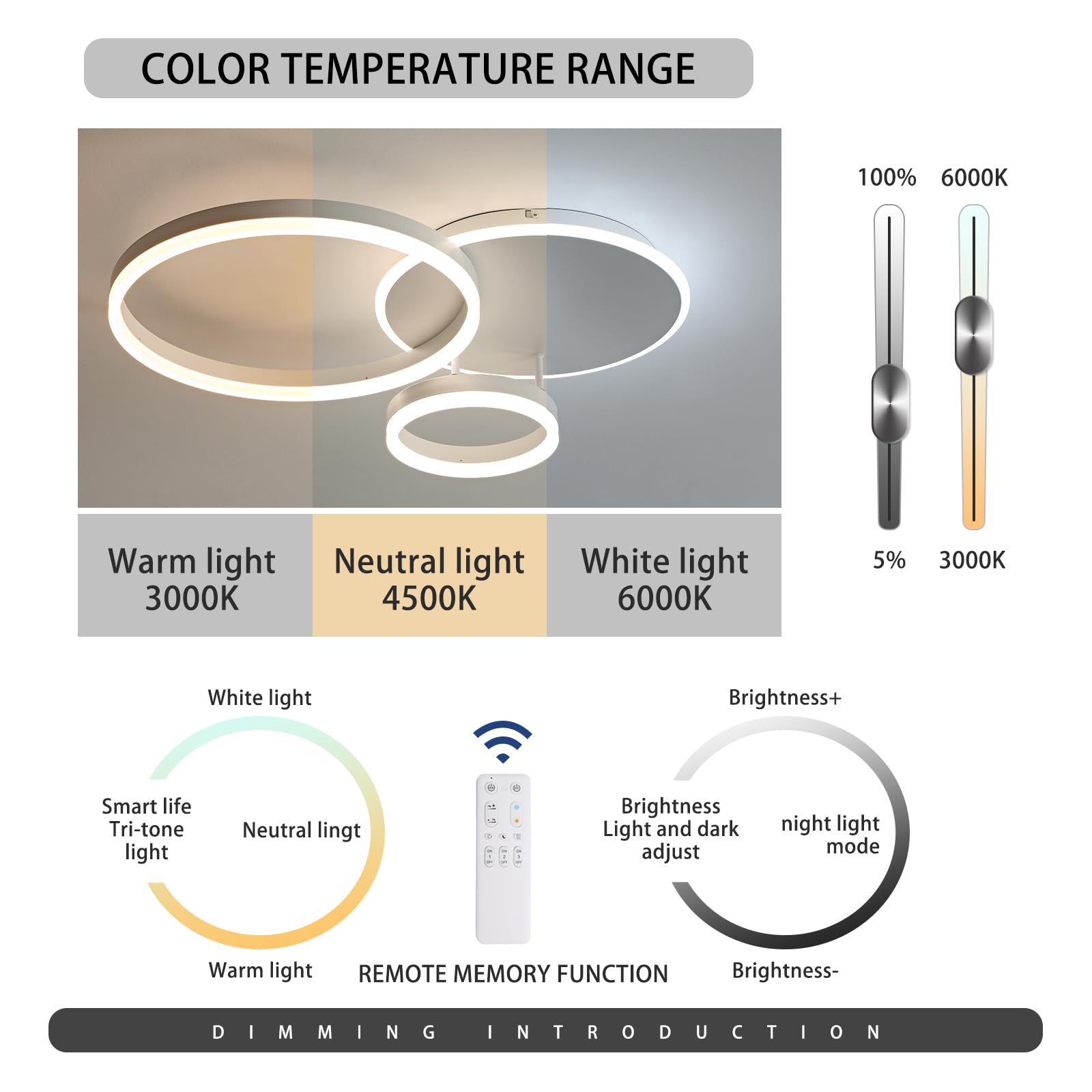 - Flexible Lichtsteuerung: Passen Sie die Beleuchtung einfach per Fernbedienung an. Wählen Sie stufenlos die Farbtemperatur (3000K Warmweiss bis 6000K Kaltweiss) und dimmen Sie die Helligkeit (5% bis 100%). Eine praktische Nachtlichtfunktion ist ebenfalls integriert.