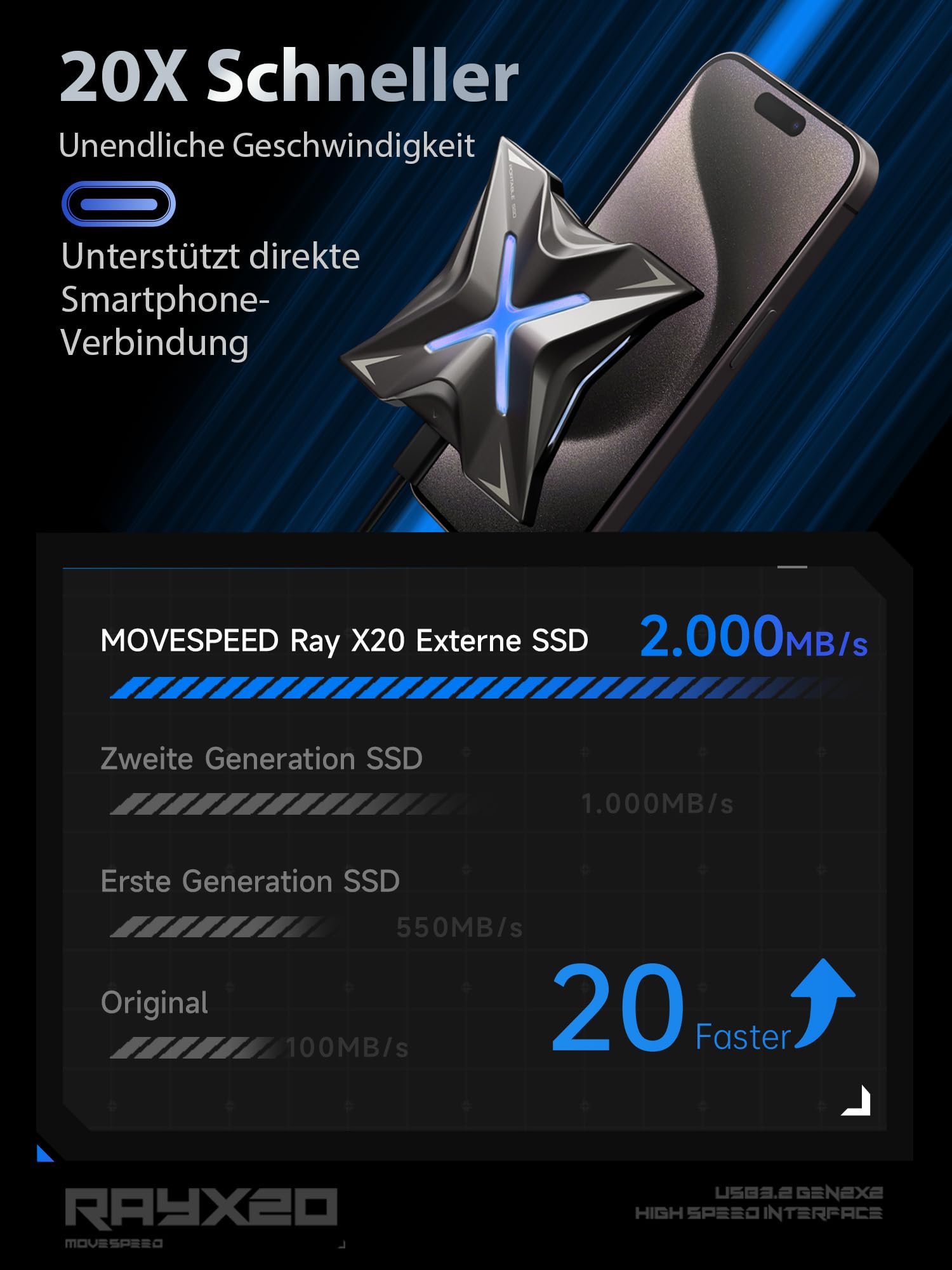 MOVE SPEED RX20 Ultraschnelle Externe SSD 2TB – USB 3.2 Gen 2x2