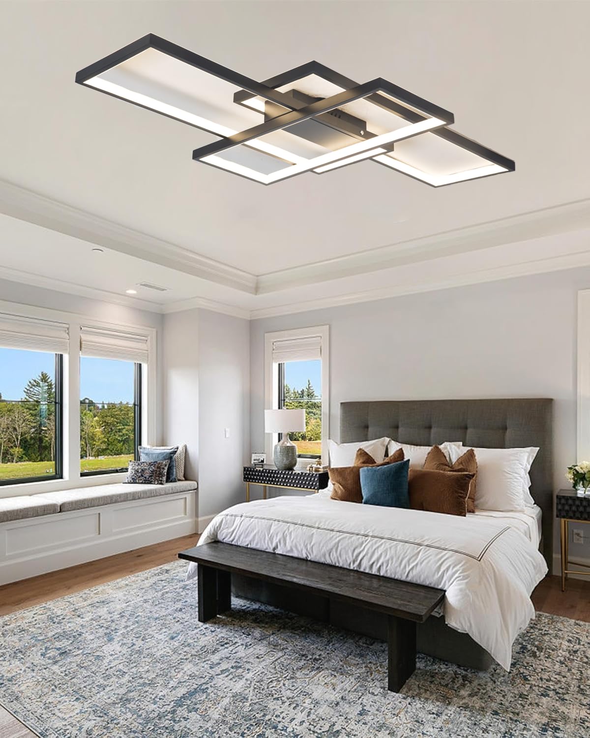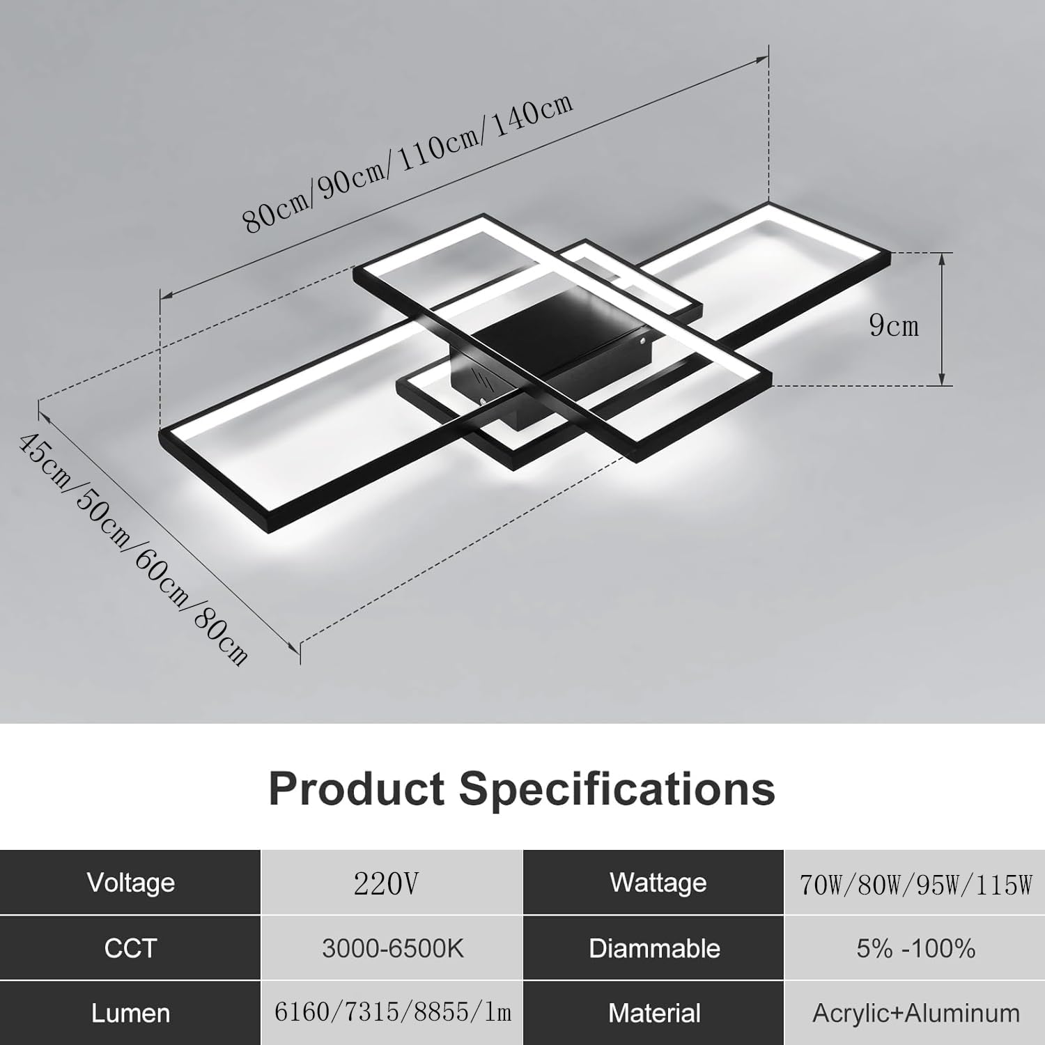 MQW Moderne Geometrische LED Deckenleuchte Dimmbar Wohnzimmer – Schwarz L80cm