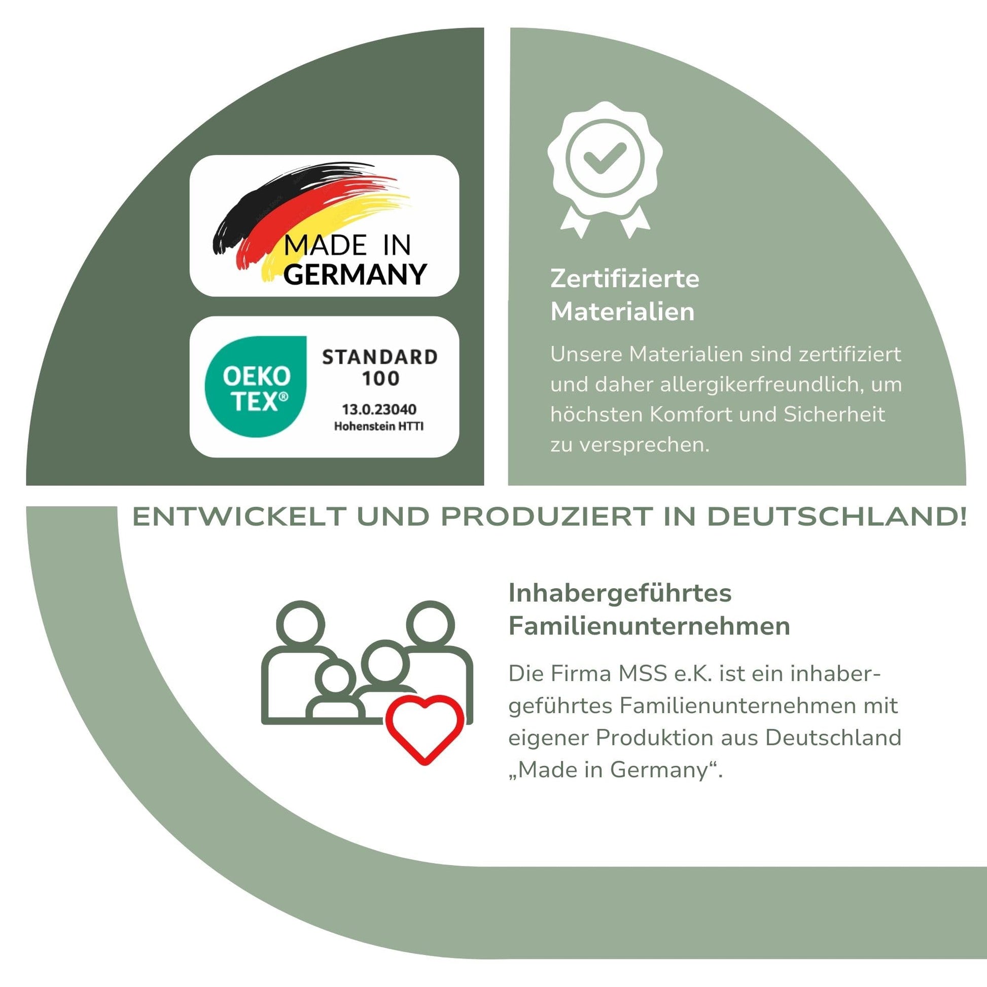 - Qualität: Hergestellt in Deutschland, zertifiziert nach STANDARD 100 by OEKO-TEX®