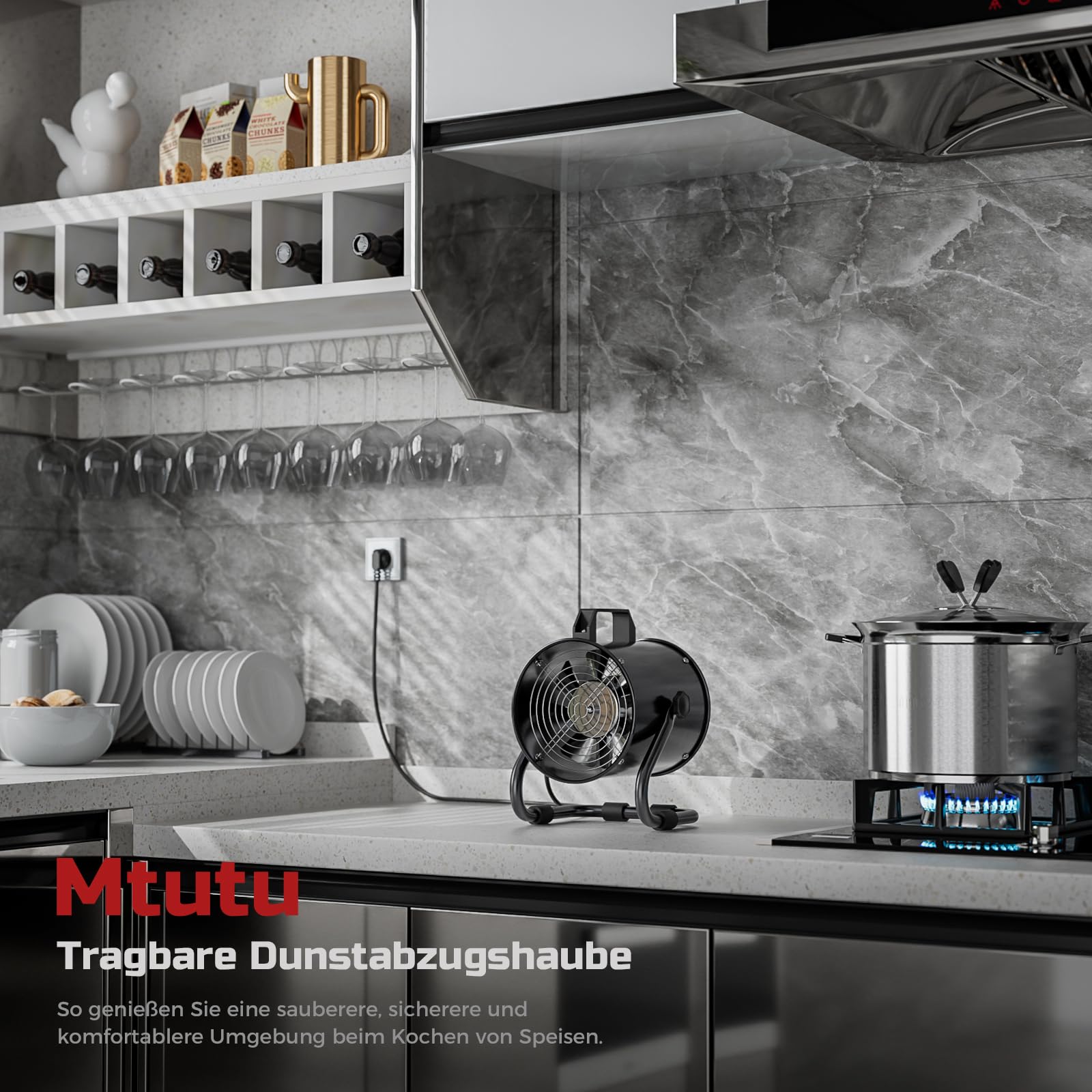 Diese mobile Dunstabzugshaube von Mtutu ist die ideale Lösung für saubere Luft in jeder Küche, insbesondere dort, wo eine fest installierte Lüftung fehlt. Sie beseitigt effektiv Rauch und Gerüche und sorgt für ein angenehmes Kocherlebnis.