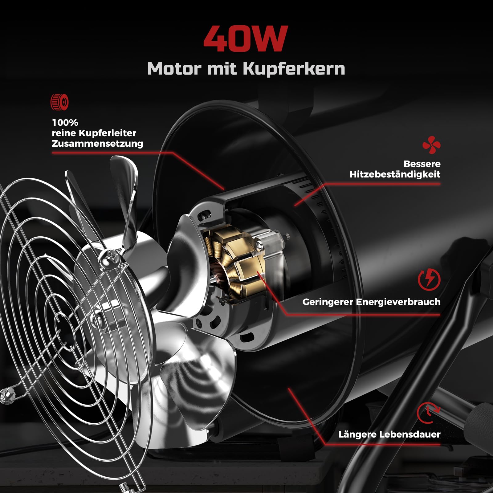 - Robuste Bauweise: Das Gehäuse besteht aus einer langlebigen Aluminiumlegierung und der Motor mit reinem Kupferkern ist für eine lange Lebensdauer ausgelegt.
