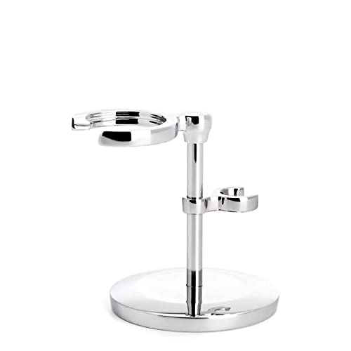 - Komplettset: Beinhaltet einen Rasierhobel mit geschlossenem Kamm, einen Rasierpinsel mit hochwertigen Silvertip Fibre® Borsten und einen passenden, verchromten Metall-Ständer.