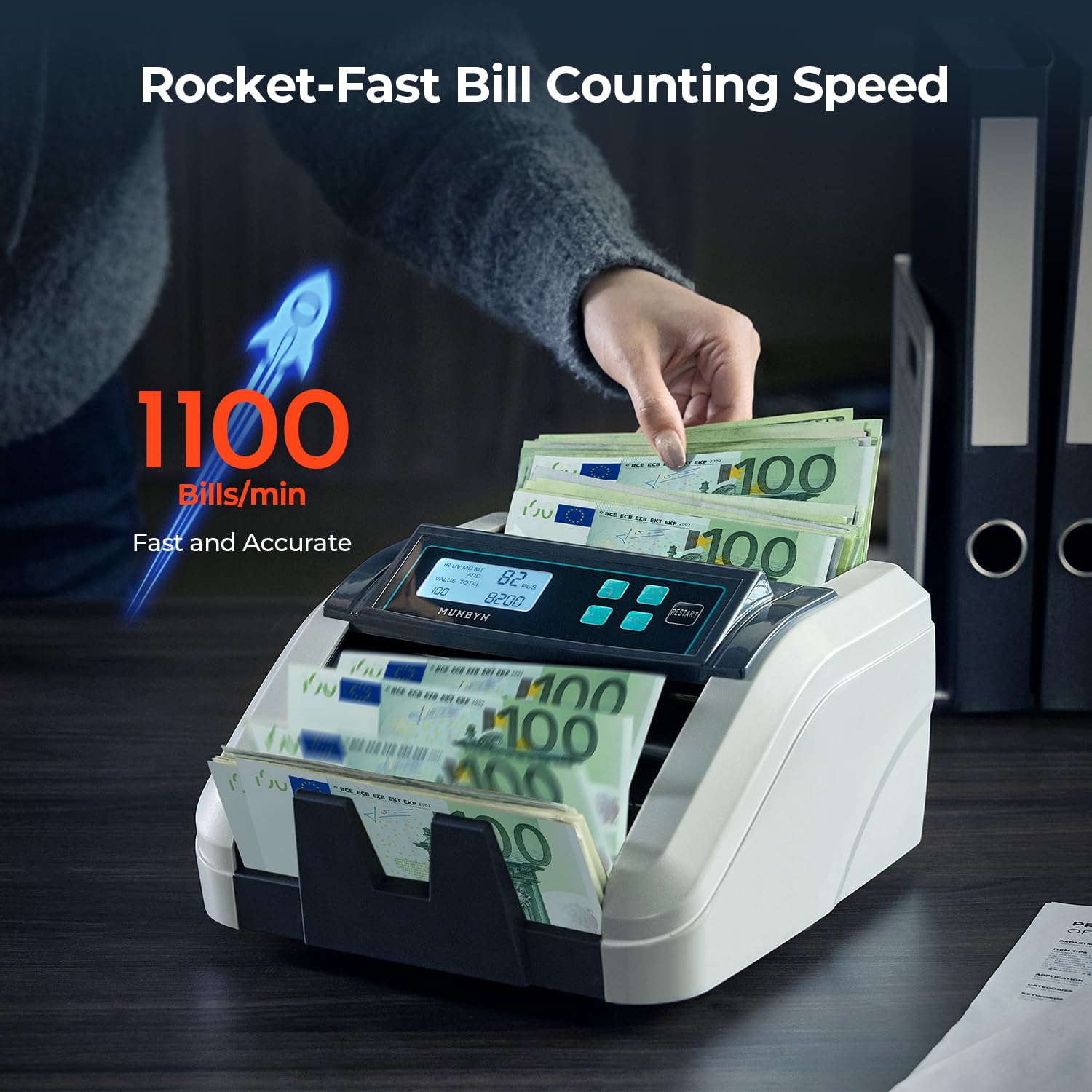 Die MUNBYN IMC51 Geldzählmaschine ist die ideale Lösung für alle, die eine schnelle und zuverlässige Methode zum Zählen von vorsortierten Euro-Banknoten suchen. Steigern Sie die Effizienz Ihrer Kassenabrechnung und minimieren Sie das Risiko menschlicher Fehler.