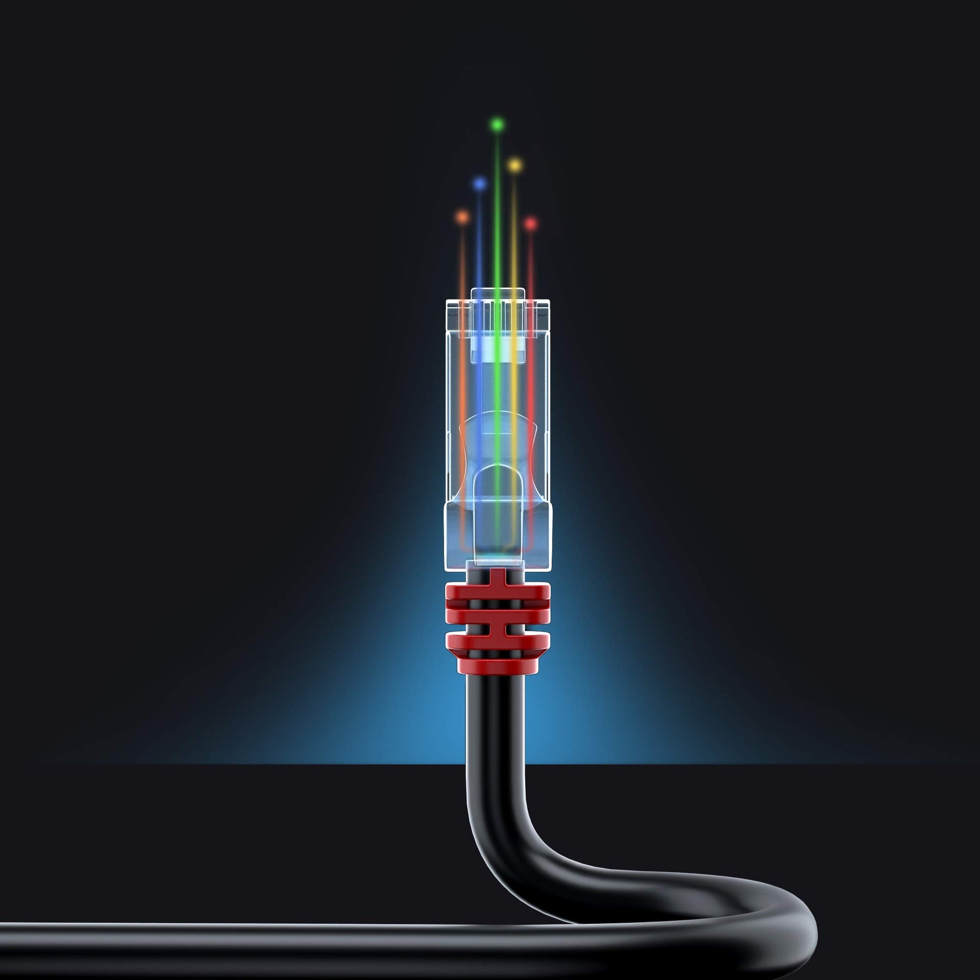 - Erstklassige Materialien: Gefertigt aus geschirmten 26AWG Twisted-Pair-Kupferdrähten (OFC) und ausgestattet mit vergoldeten RJ45-Steckern für eine langlebige, störungsfreie Verbindung.