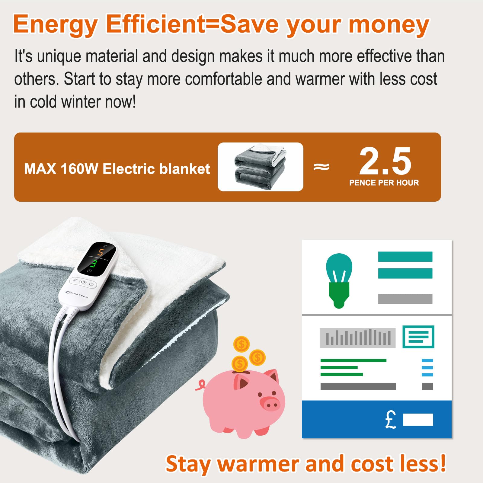 - Pflegeleicht und vielseitig: Die Wärmedecke kann einfach in der Maschine oder von Hand gewaschen werden. Ihr energieeffizientes Design hilft, Stromkosten zu sparen.