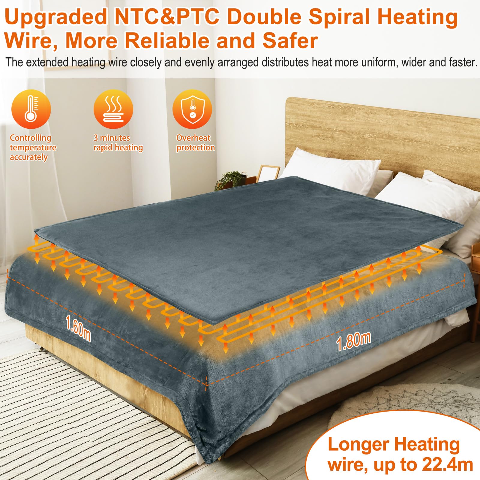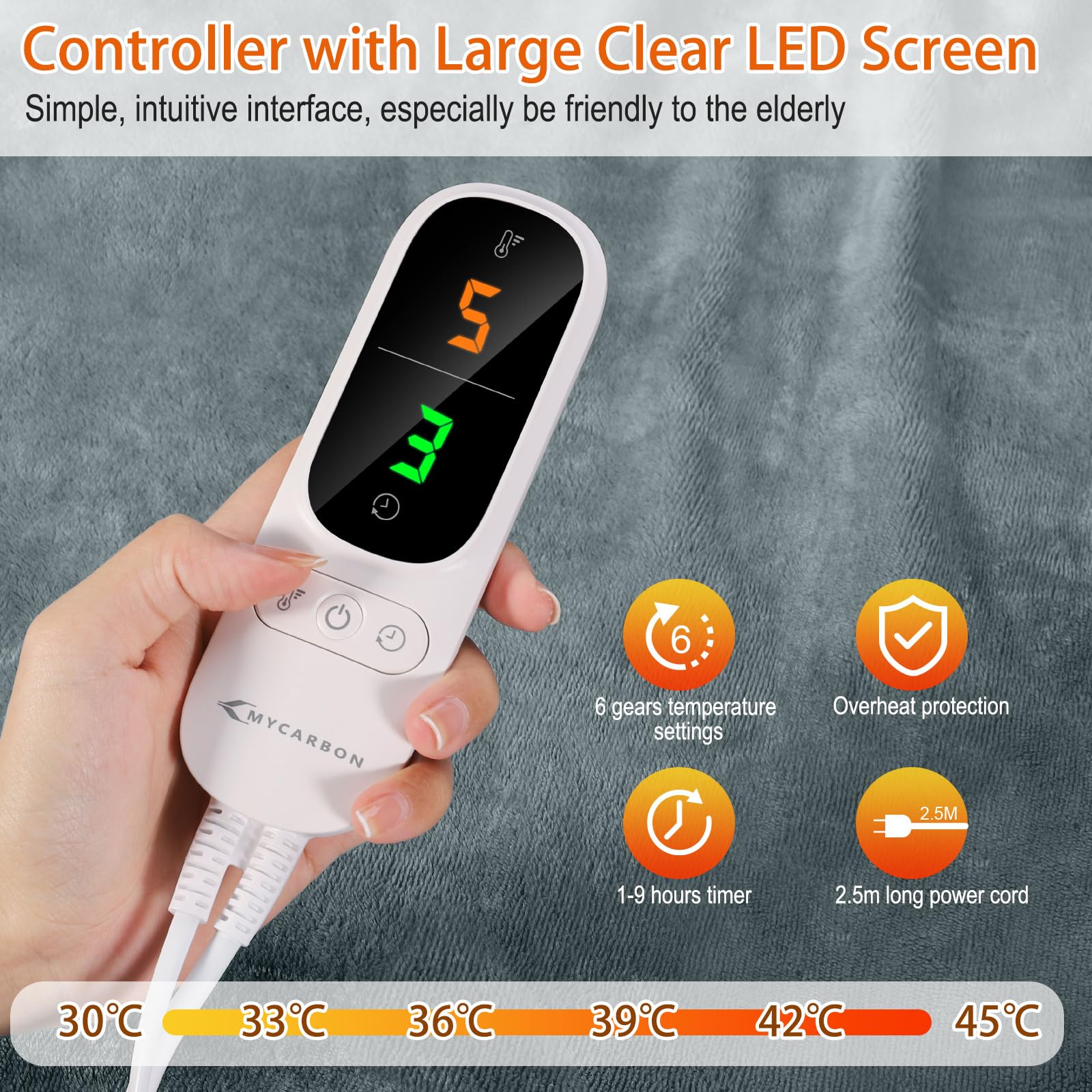 MYCARBON Heizdecke Elektrisch 180x160cm – Hellgrau
