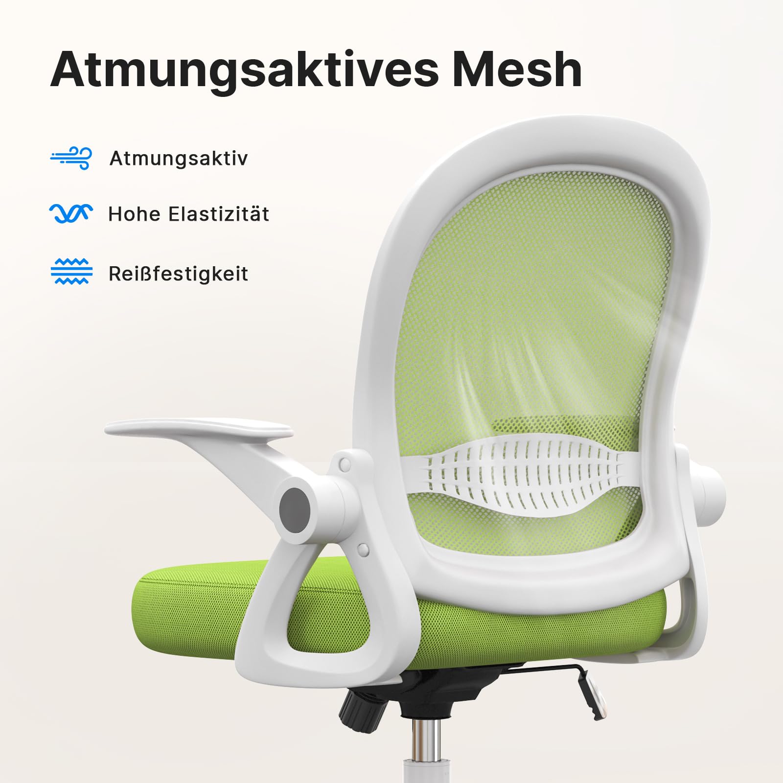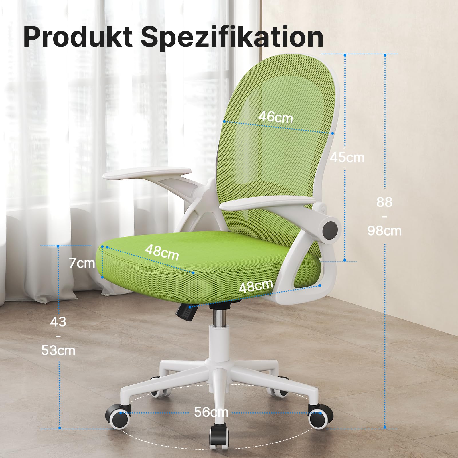 Dieser ergonomische Bürostuhl in frischem Grün kombiniert modernes Design mit durchdachter Funktionalität, um Ihren Arbeitsalltag komfortabler und flexibler zu gestalten.