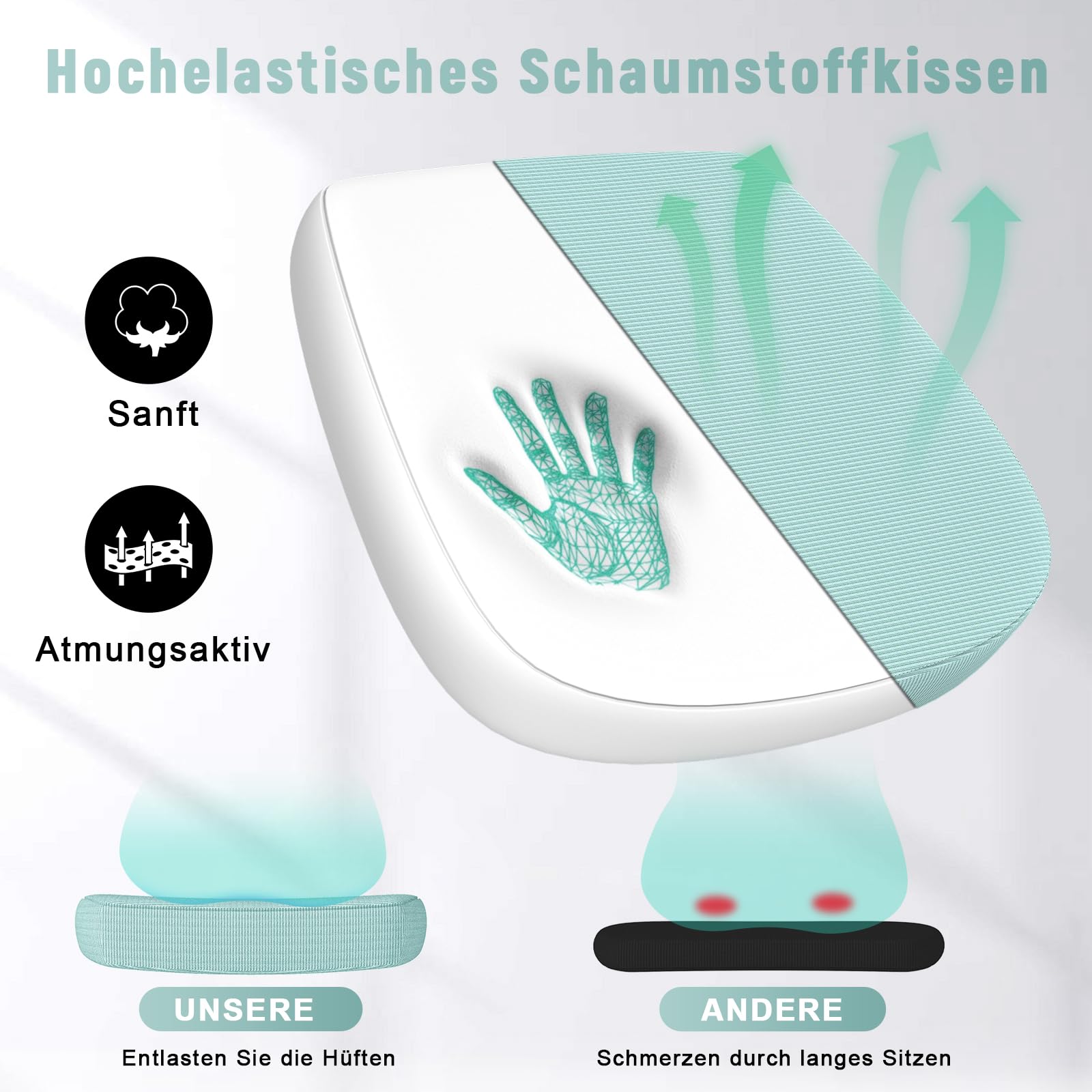 Dank der atmungsaktiven Netzrückenlehne geniessen Sie ein angenehmes Sitzklima ohne Hitzestau. Gleichzeitig sorgt die weiche Polsterung der Sitzfläche für eine exzellente Druckverteilung und dauerhaften Komfort, egal ob beim Arbeiten, Lernen oder Entspannen.