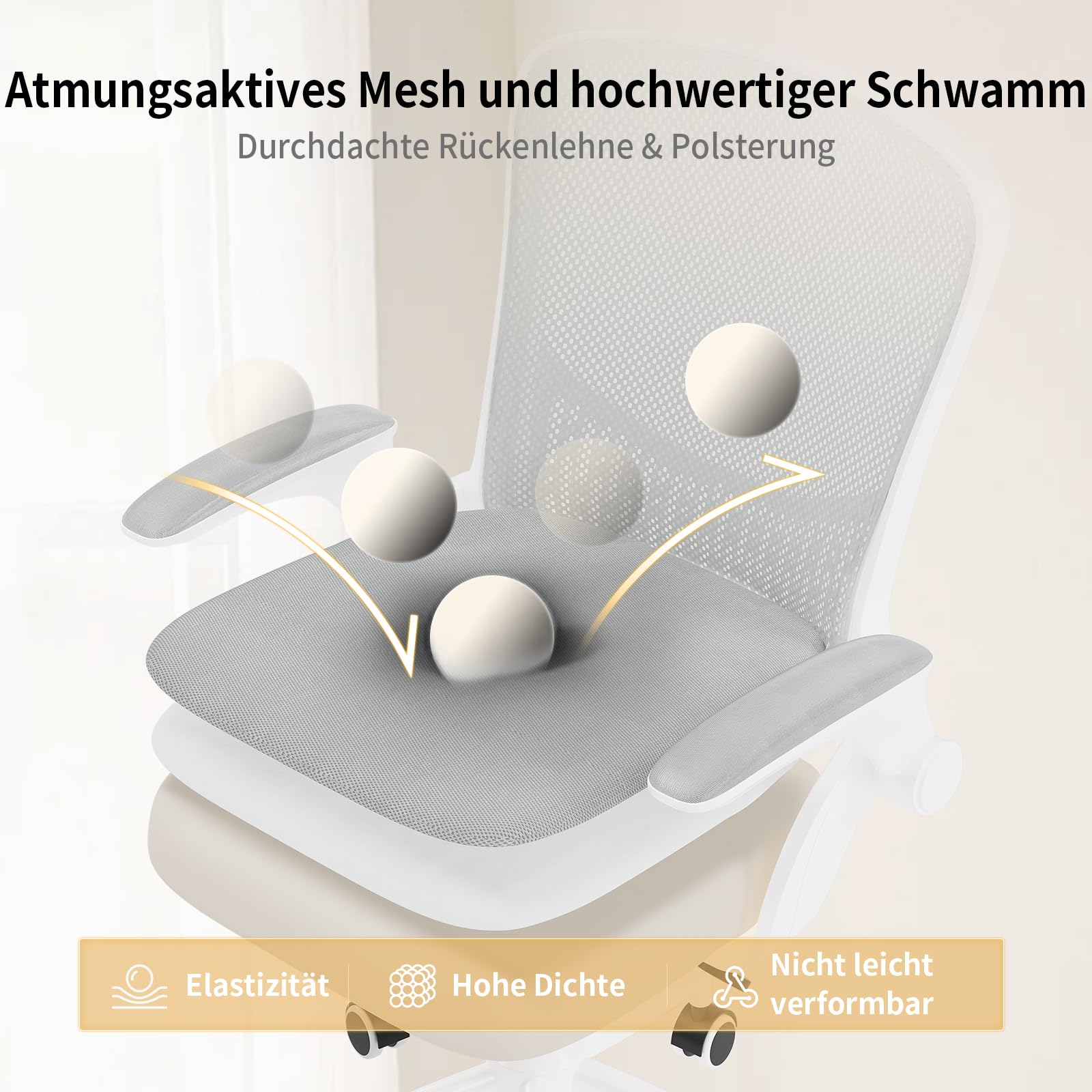 - Atmungsaktives und formstabiles Sitzpolster aus hochdichtem Schaumstoff