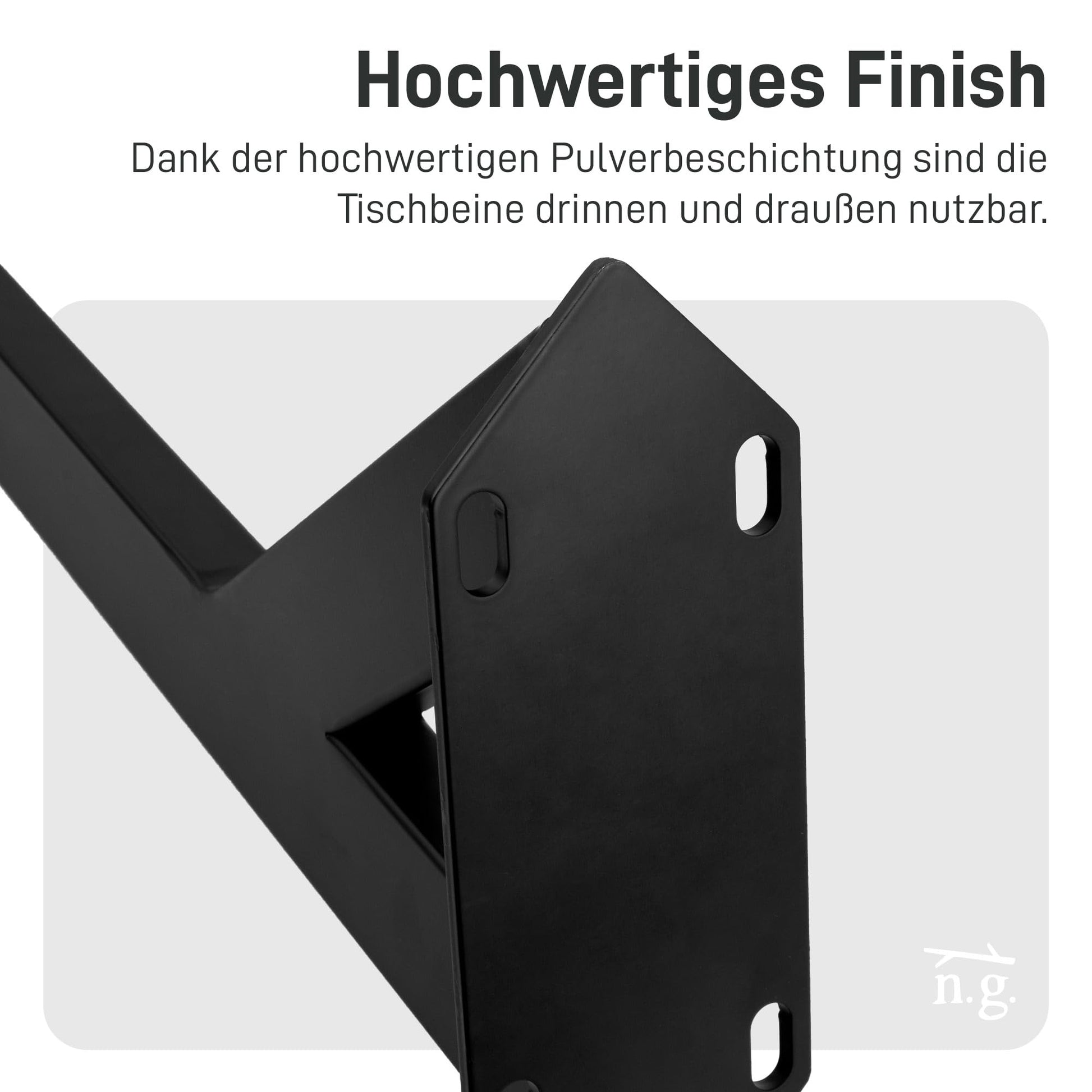 Die hochwertige Pulverbeschichtung verleiht den Tischbeinen nicht nur eine edle Optik, sondern macht sie auch äusserst resistent und pflegeleicht. Diese robuste Oberfläche schützt das Gestell und macht es zum idealen Partner für Möbel im Wohnzimmer ebenso wie für stilvolle Tische auf dem Balkon, der Terrasse oder im Garten.