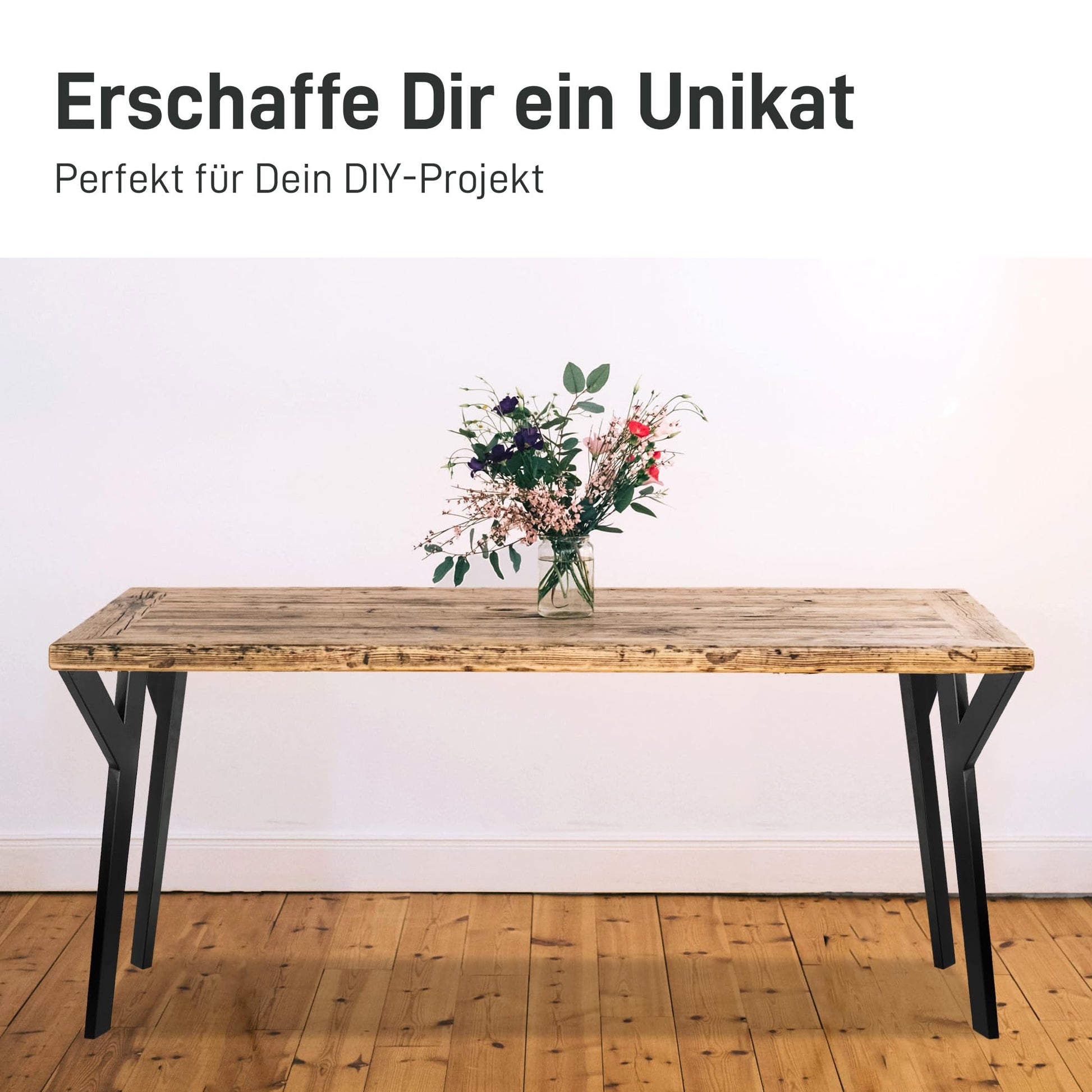 Verwirklichen Sie Ihre kreativen Möbelideen mit diesem 4er-Set hochwertiger Tischbeine. Die elegante Y-Form in zeitlosem Schwarz bietet das perfekte Fundament, um aus einer einfachen Tischplatte ein individuelles Design-Möbelstück für Ihr Zuhause oder den Aussenbereich zu erschaffen.
