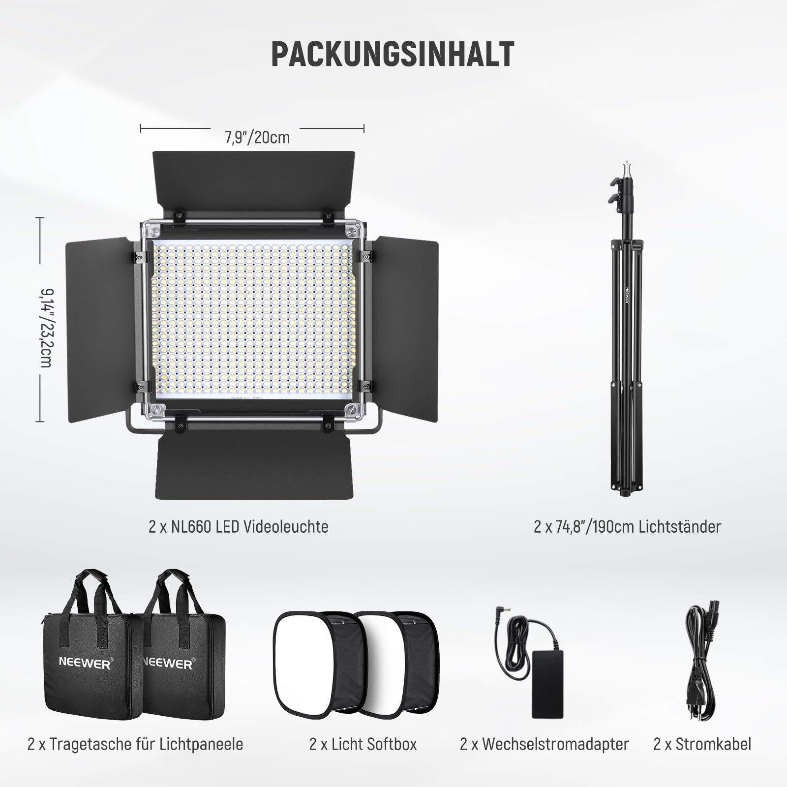 NEEWER 660 LED Bi-Farbe Videolicht Panel 2er-Set mit Stativen