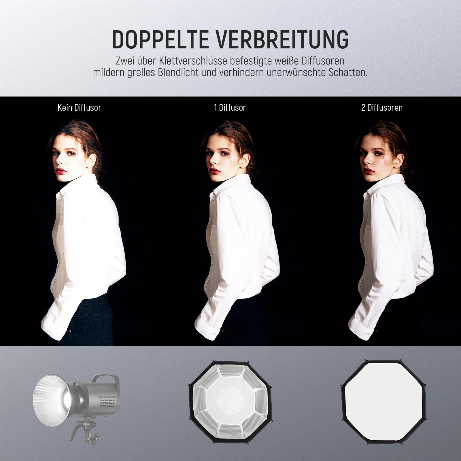 - Hochwertige Lichtformung: Achteckige Form mit 90 cm Durchmesser für ein besonders natürliches, rundes Spitzlicht in den Augen von Models.