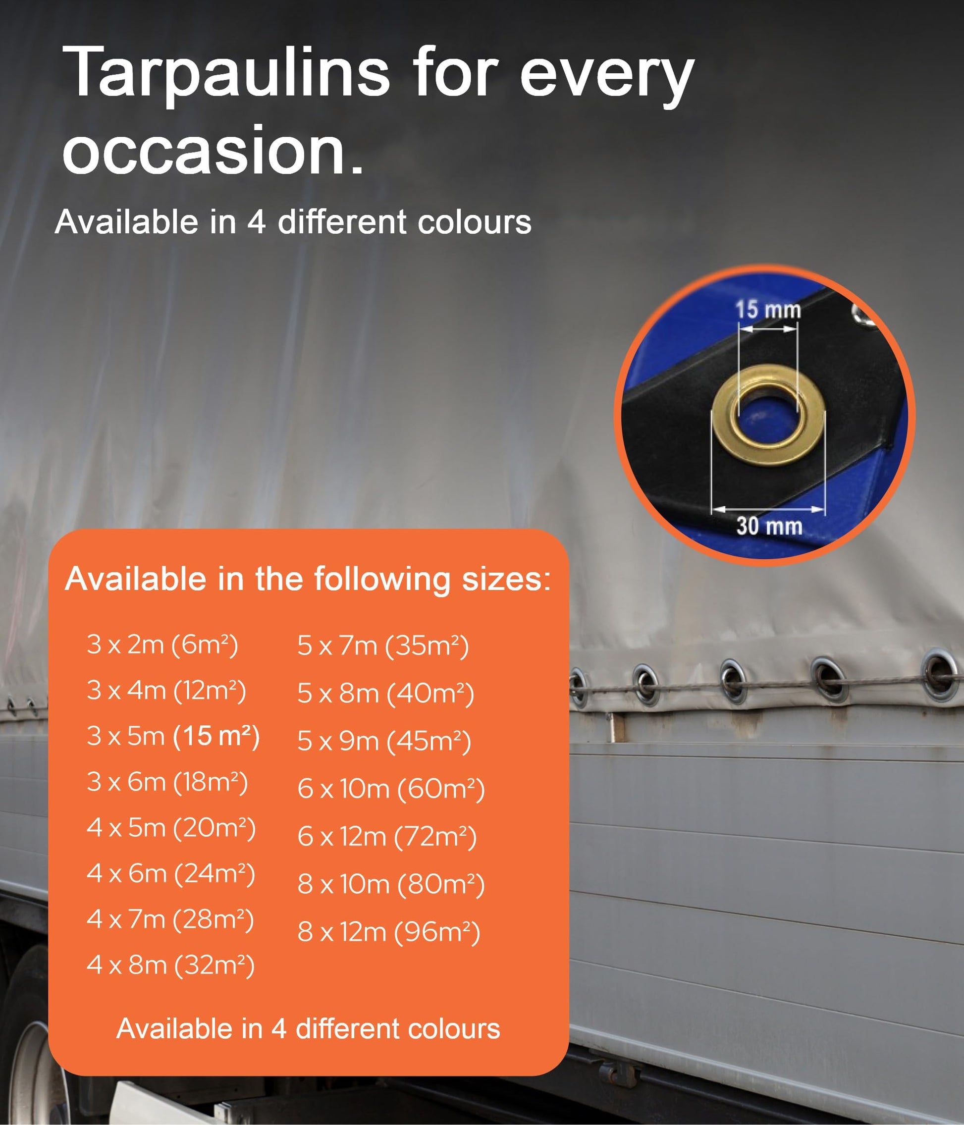 Die Befestigung ist dank der stabilen Messing-Ösen, die im geringen Abstand von nur 50 cm entlang des verstärkten Rands angebracht sind, sehr einfach und sicher. Dies ermöglicht ein schnelles und straffes Verzurren der Plane an fast jedem Objekt.