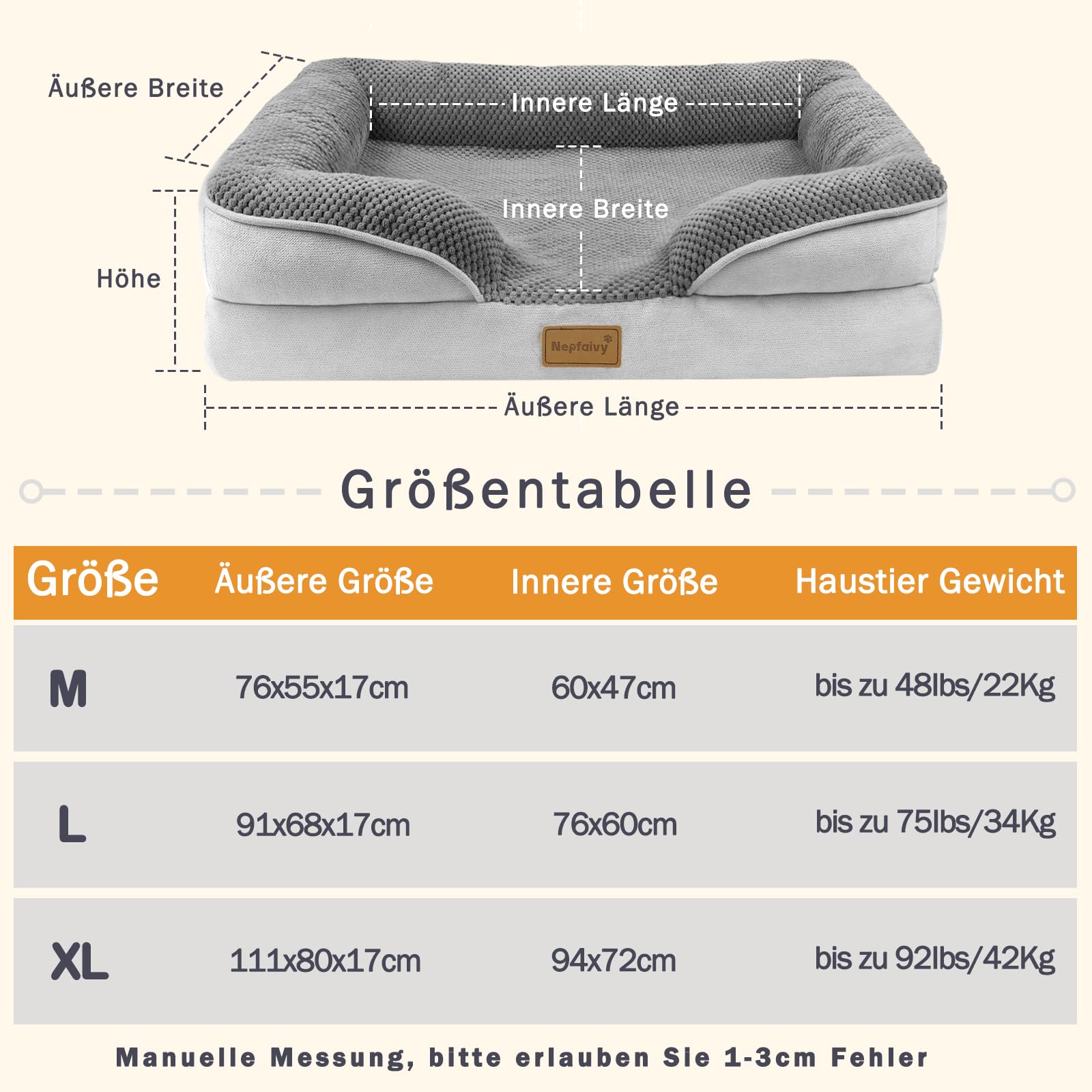 Nepfaivy Orthopädisches Hundebett für grosse Hunde 111x80x17cm