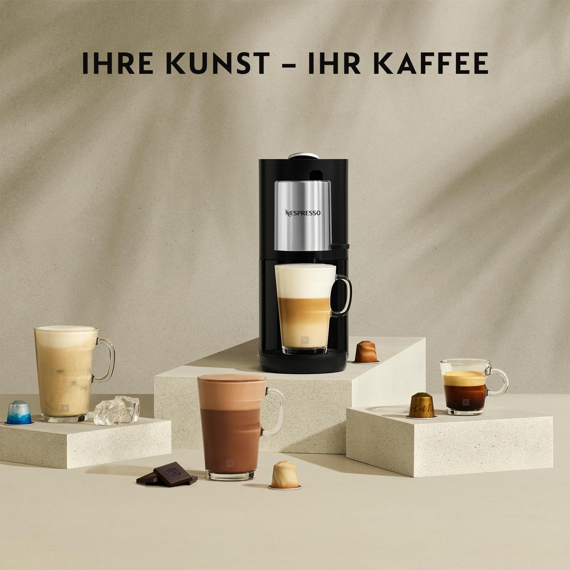 Mit der Nespresso Atelier sind Sie der Meister Ihrer eigenen Kaffeekreationen. Die Maschine ist Ihr persönliches Atelier, das es Ihnen erlaubt, Rezepte ganz nach Ihren Wünschen zu gestalten. Dank der fortschrittlichen Technologie für kalten Milchaum können Sie sich an heissen Sommertagen mit erfrischenden Eiskaffeespezialitäten abkühlen. Da alle Zubereitungsschritte direkt in der Tasse stattfinden, sparen Sie Zeit und Aufwand.