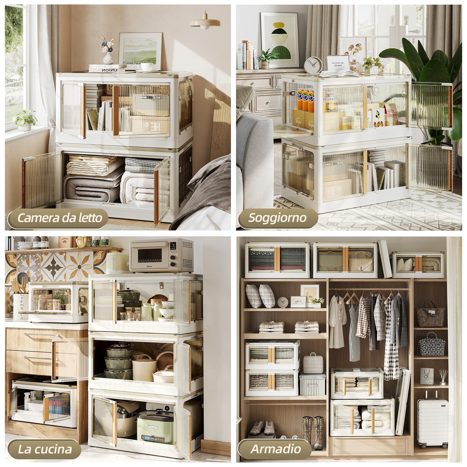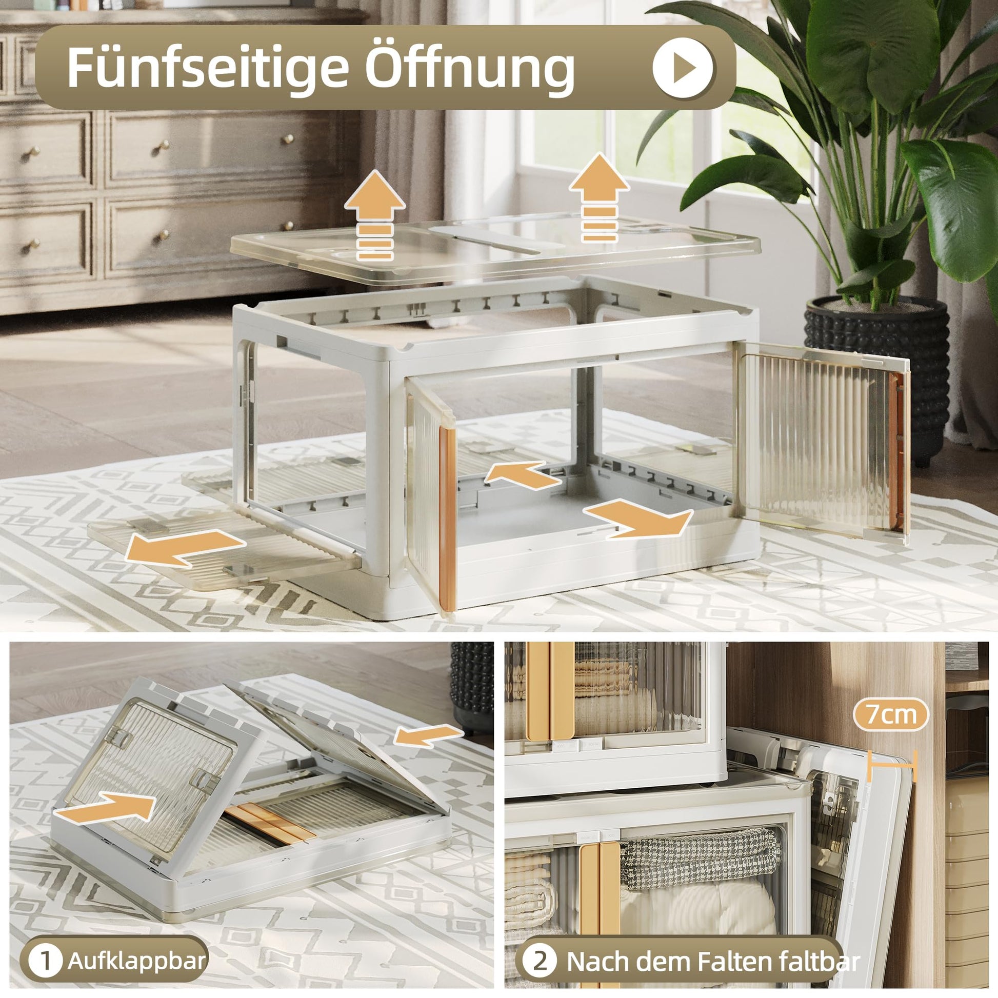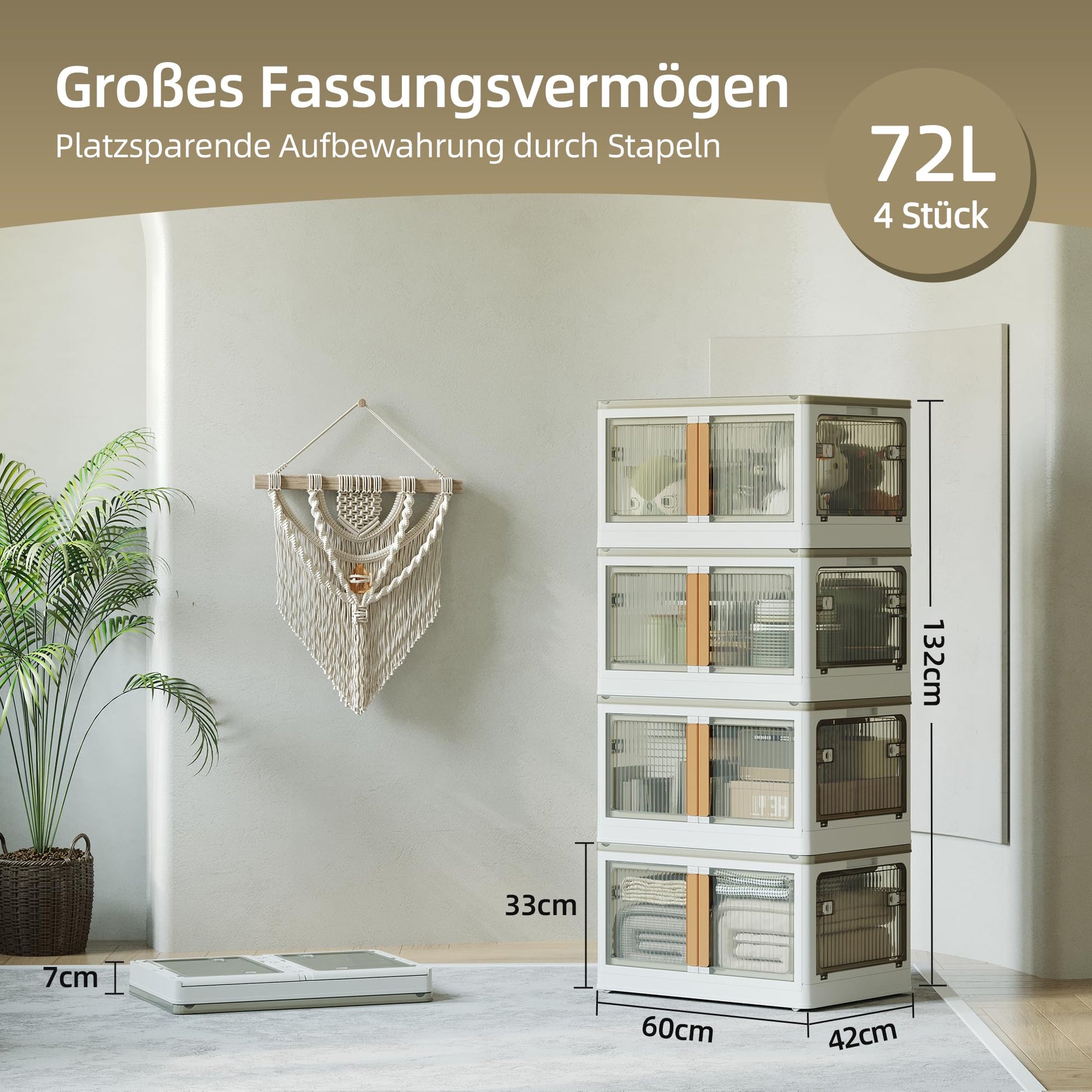 NETEL Faltbare Aufbewahrungsbox 72L – 4er Set Transparent mit Tür