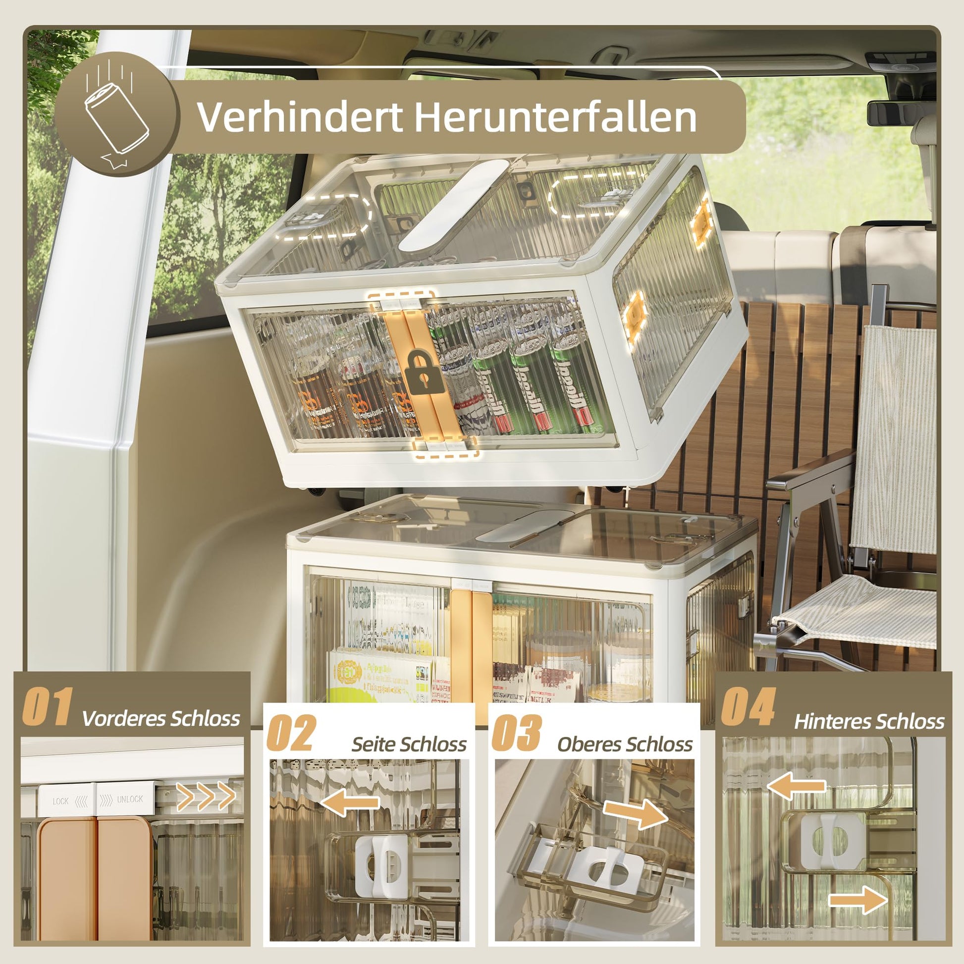- Sicherer Verschluss: Die Türen sind mit Schiebeverschlüssen und Stiften ausgestattet, die für einen festen Halt sorgen. So wird verhindert, dass Kinder die Boxen ungewollt öffnen.
