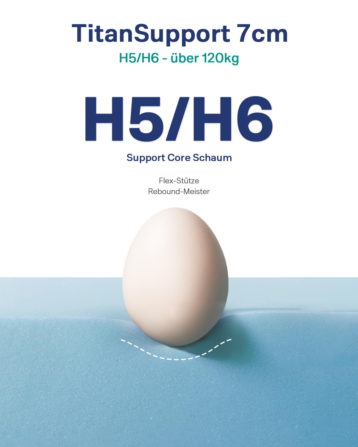 - Material & Höhe: 7 cm fester und zugleich bequemer Komfort-Kaltschaum.