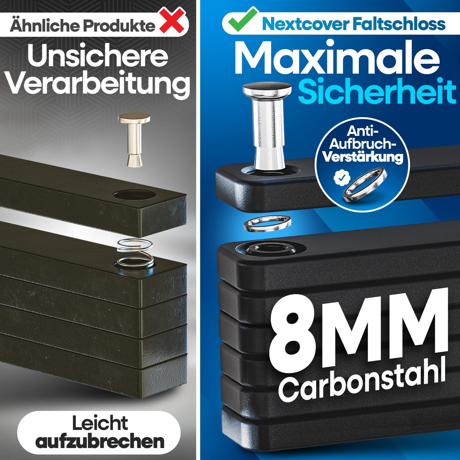 - Robustes Material: Gefertigt aus massivem, gehärtetem Carbonstahl für maximale Widerstandsfähigkeit.