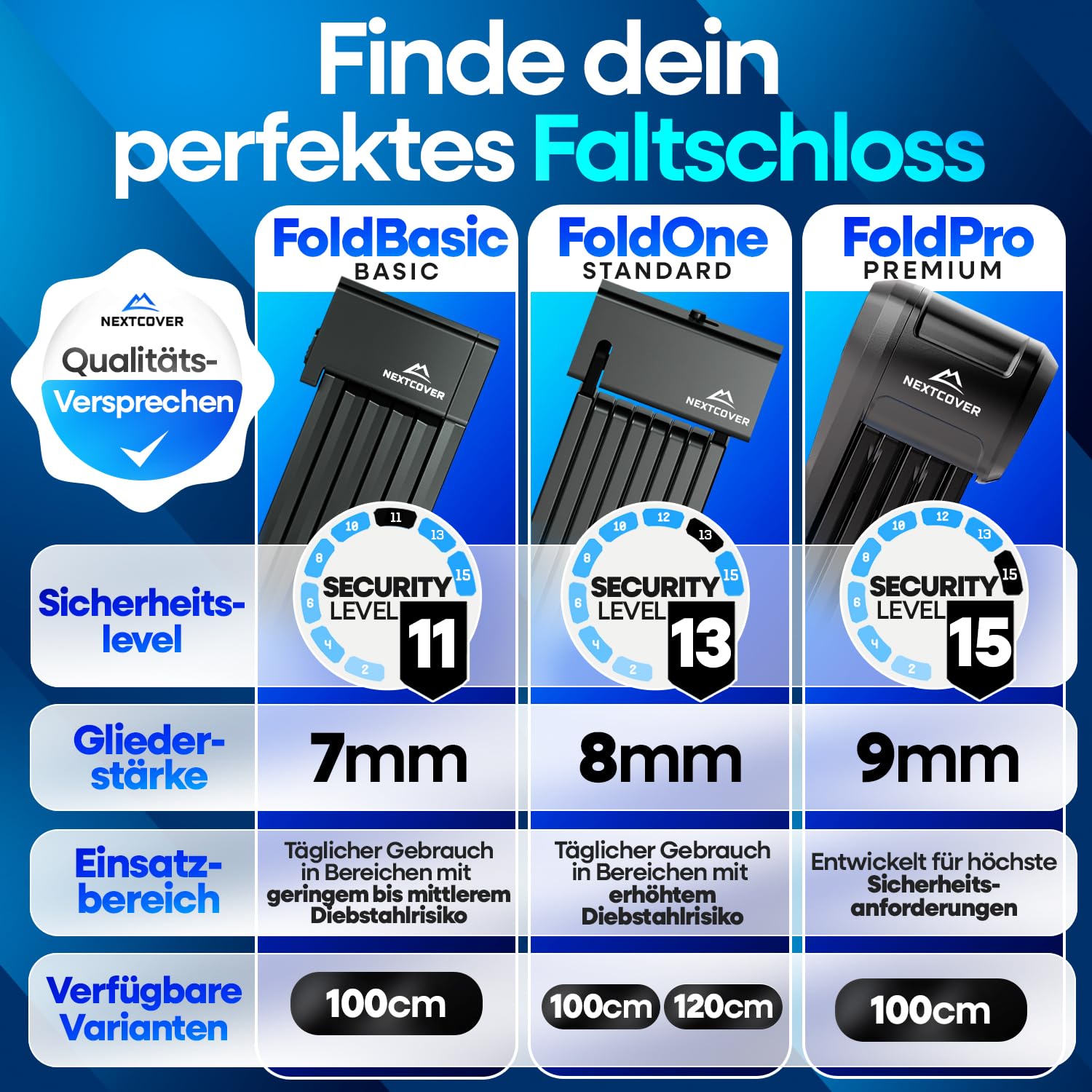 Welches Sicherheitslevel hat das Nextcover Faltschloss und schützt es effektiv vor Diebstahl?