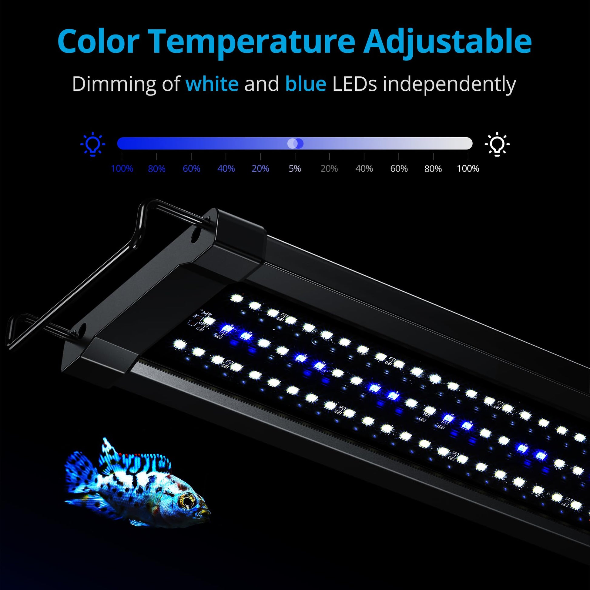 - Flexible Montage: Dank der ausziehbaren Halterungen lässt sich die Lampe mühelos an Aquarien mit einer Breite von 118 cm bis 150 cm anpassen.