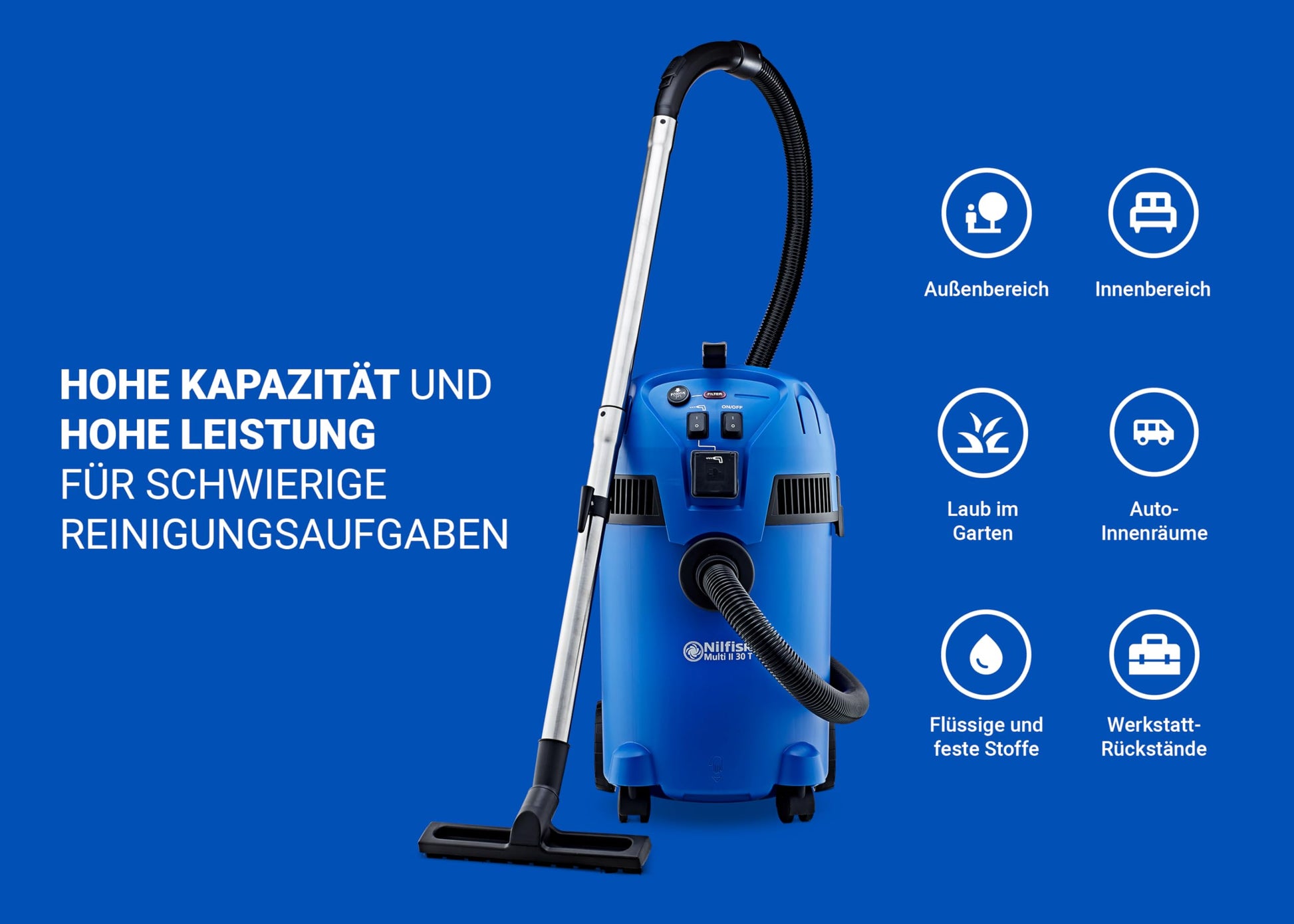 Der Nilfisk Multi II 30 T ist ein vielseitiger und leistungsstarker Nass- und Trockensauger der neuesten Generation, konzipiert für anspruchsvolle Reinigungsaufgaben im Innen- und Aussenbereich.