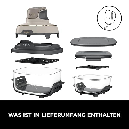 Die Ninja CRISPi wird mit zwei sicheren, PFAS-freien CleanCrisp-Glasbehältern geliefert. Der grosse Vorteil ist, dass Sie darin nicht nur kochen, sondern die Reste mithilfe der mitgelieferten Aufbewahrungsdeckel direkt im selben Gefäss im Kühlschrank aufbewahren können.