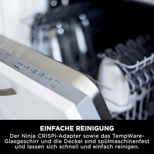Mühelose Reinigung: Vergessen Sie aufwändiges Schrubben von Hand. Die beiden Glasbehälter sowie die Antihaft-Knusperbleche sind spülmaschinengeeignet und lassen sich dadurch spielend leicht reinigen.