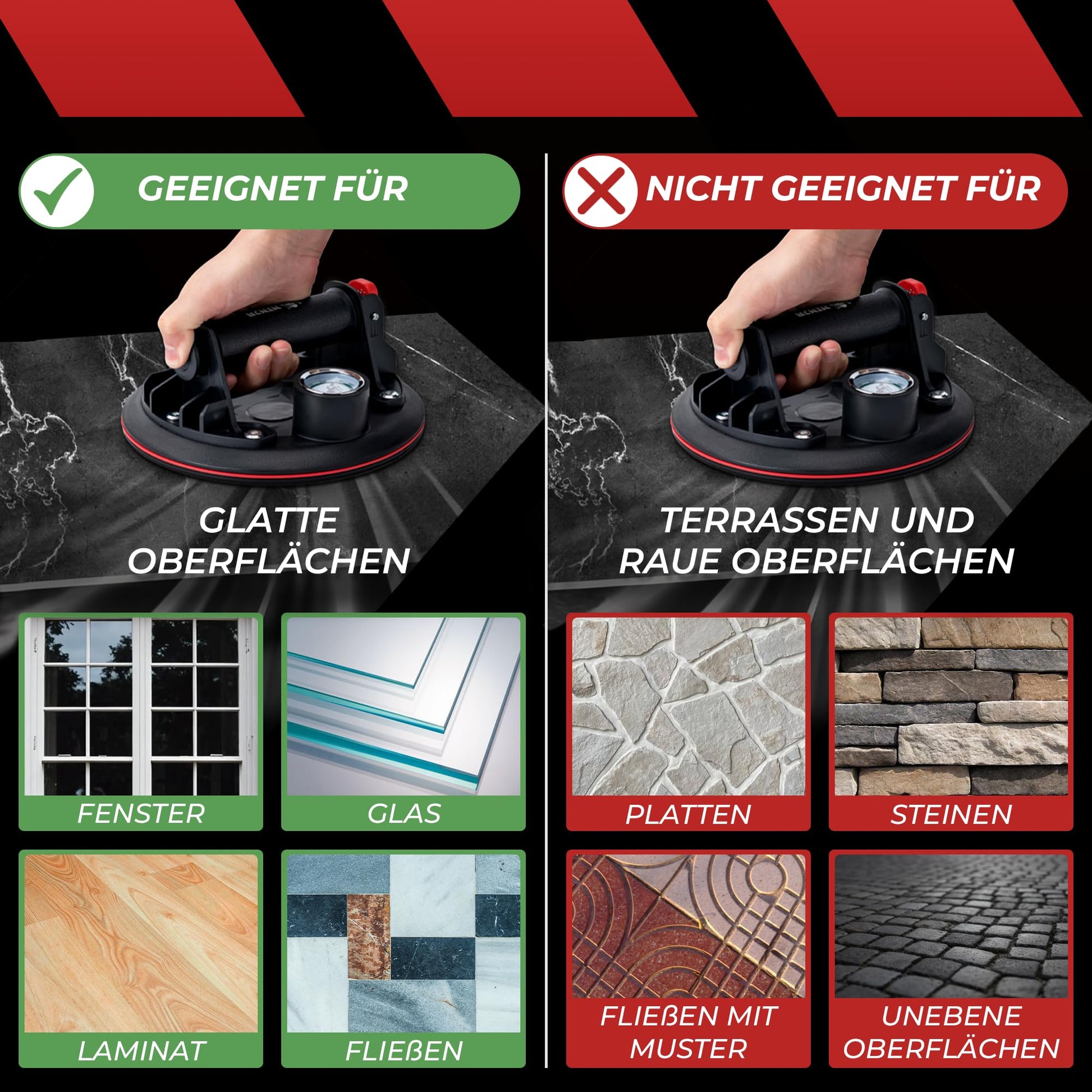 - Vielseitig einsetzbar: Die Heber eignen sich hervorragend für eine Vielzahl von glatten Materialien wie Glas, Fenster, Spiegel, Fliesen, Laminat oder Metallplatten.