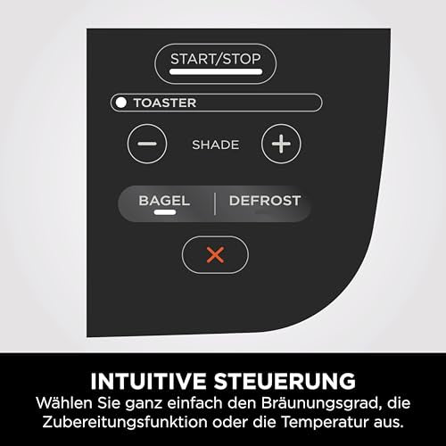 - Sieben Kochfunktionen: Wählen Sie zwischen Toasten, Bagel, Auftauen, Grillieren, Panini, Backen und Aufwärmen, um eine Vielzahl von Gerichten zuzubereiten.