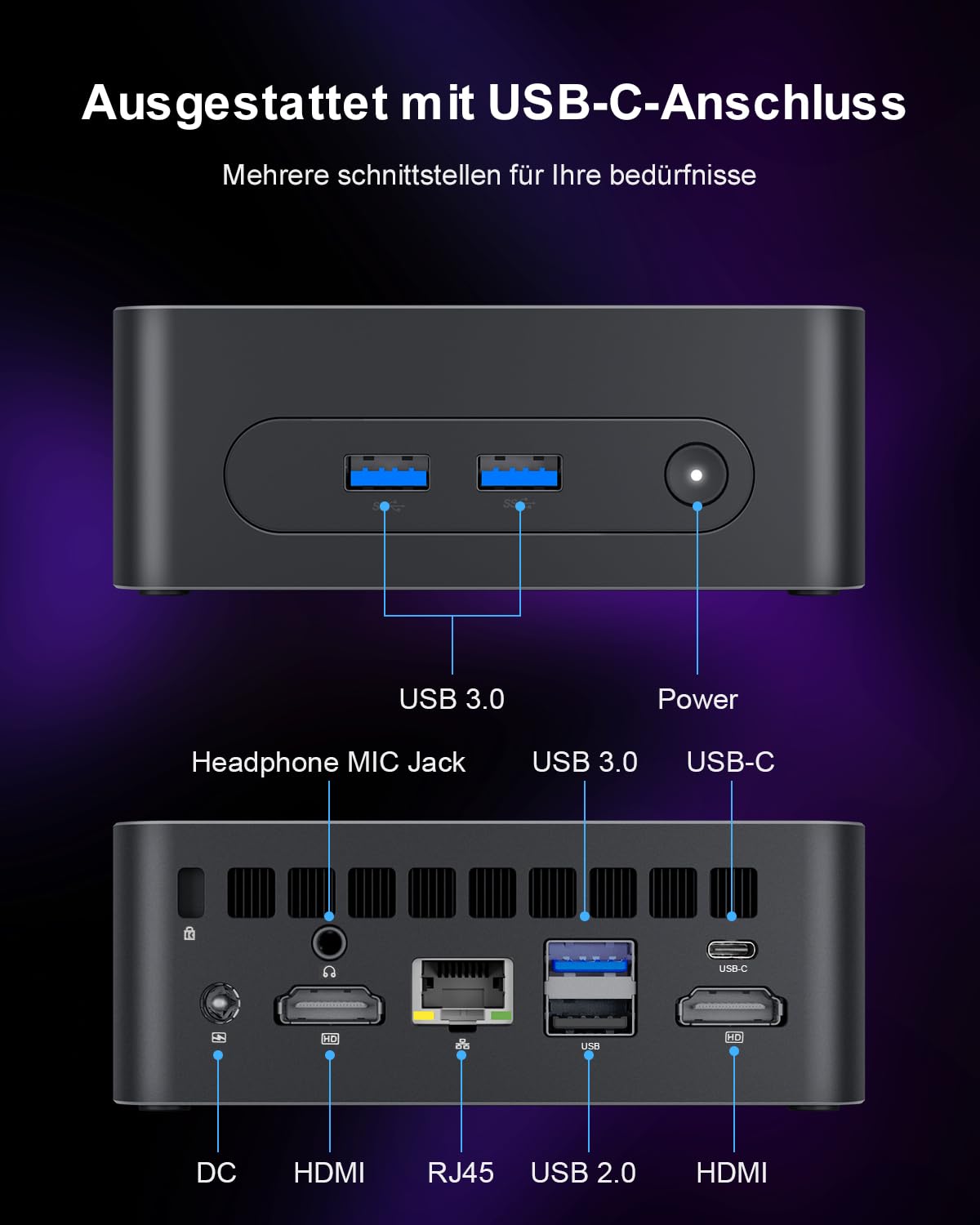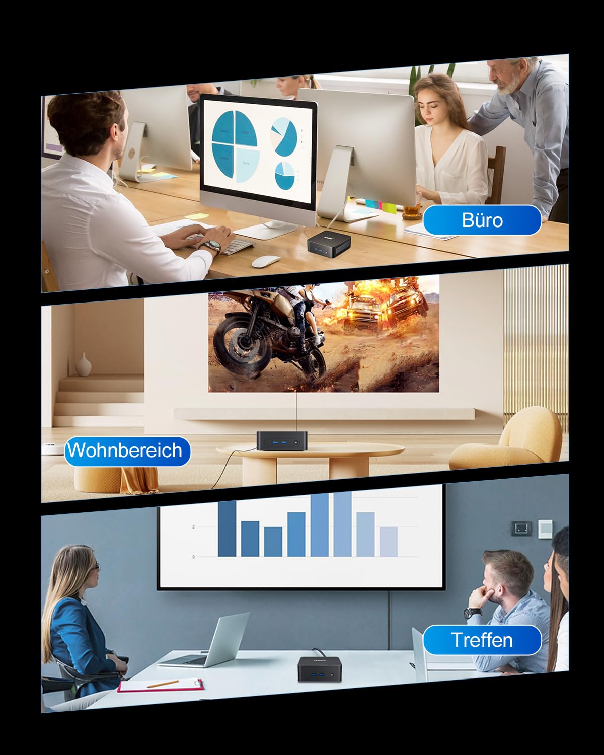 Dieser Mini-PC ist die ideale, platzsparende und leistungsstarke Lösung für moderne Arbeits- und Unterhaltungsumgebungen.