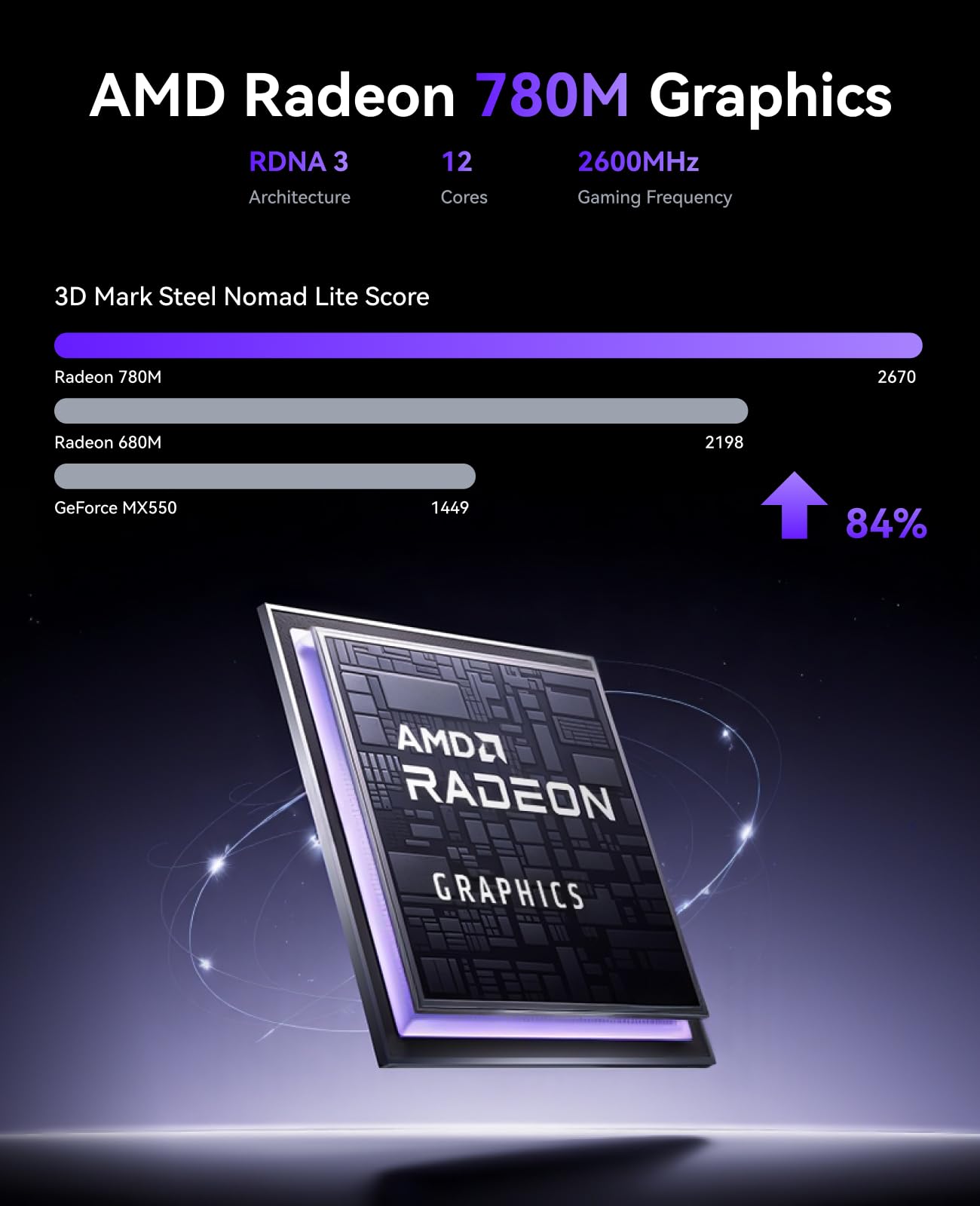 - Brillante Grafik: Eine integrierte AMD Radeon 780M Grafikeinheit mit 12 Kernen und 2600 MHz Taktung liefert gestochen scharfe Bilder und unterstützt anspruchsvolle Grafikanwendungen.