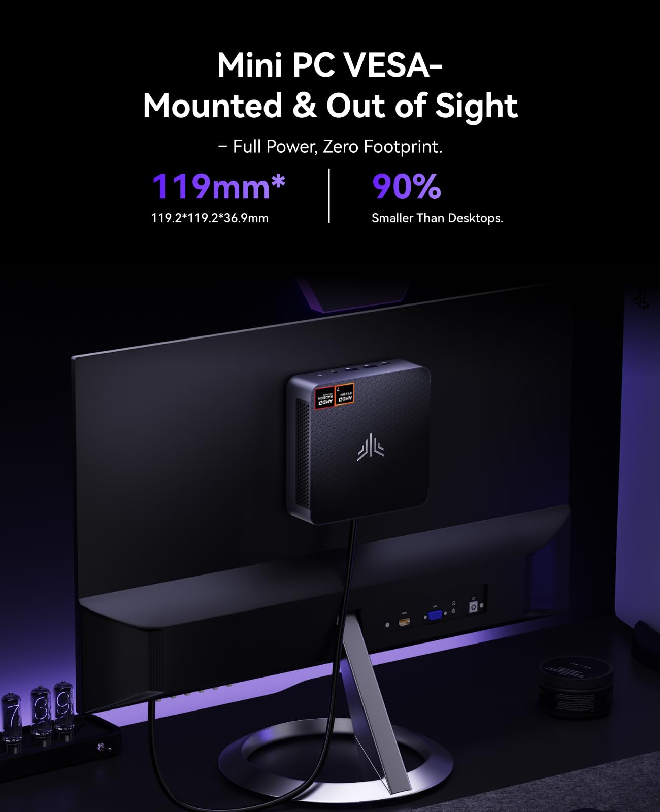 - Lieferumfang: 1x Mini-PC, 1x Netzteil, 1x VESA-Halterung, 1x Benutzerhandbuch, 1x HDMI-Kabel